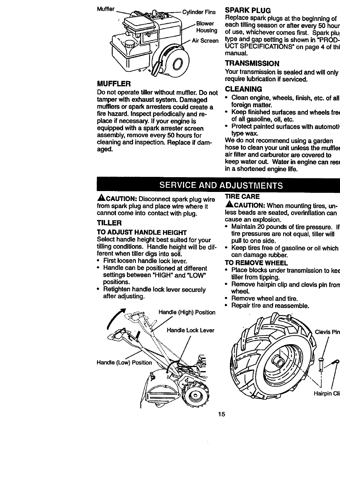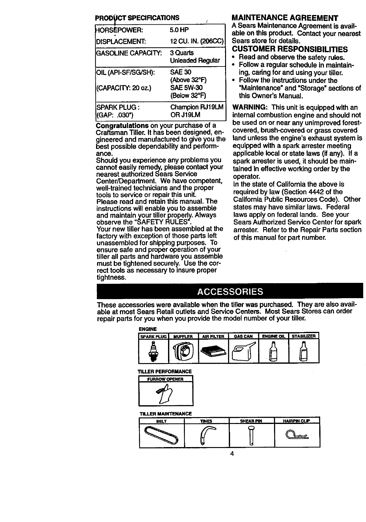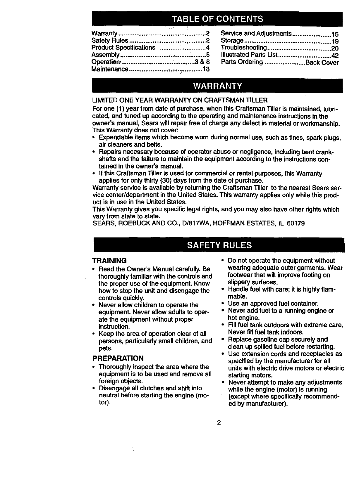 Warranty service is available by returning the Craftsman Tiller to the nearest Sears ser-
