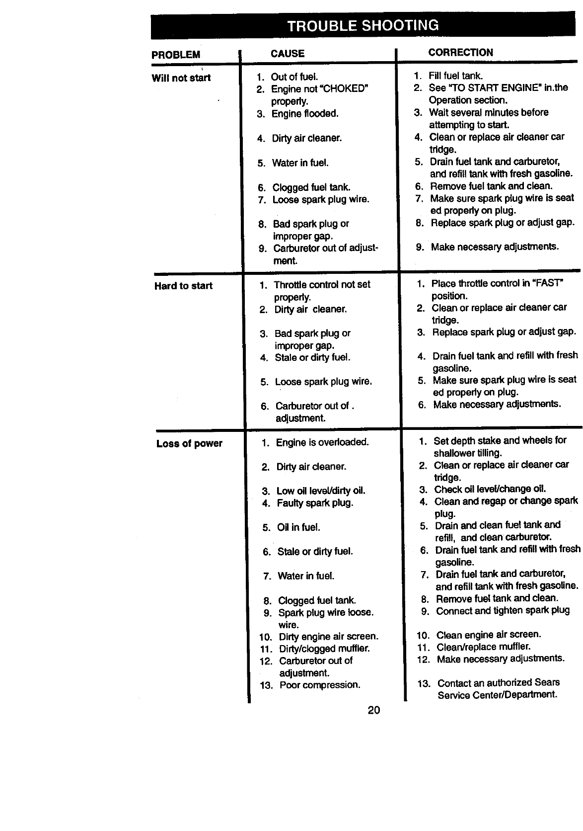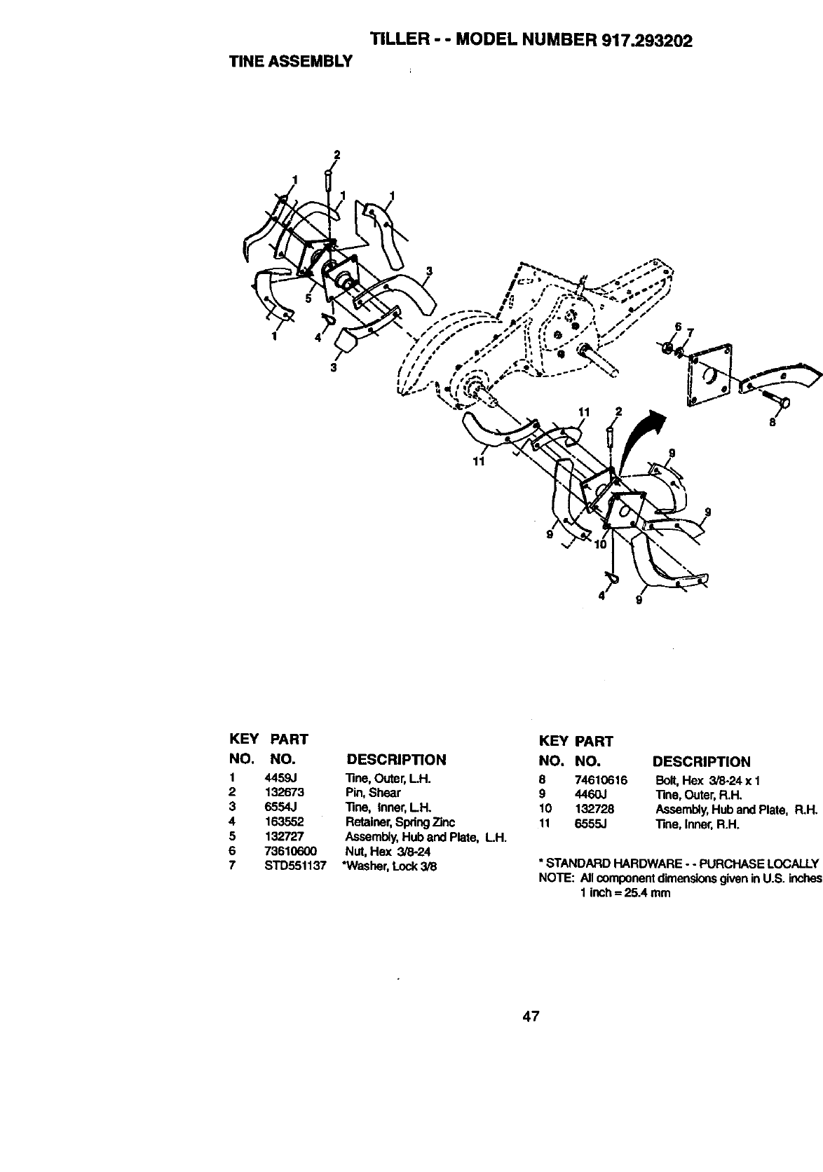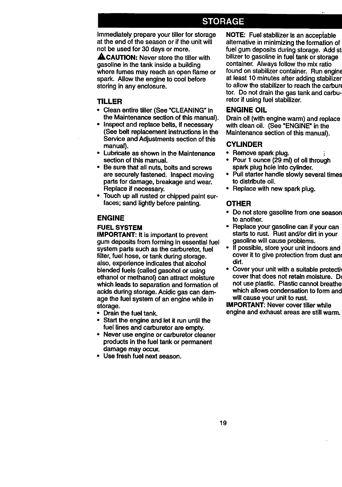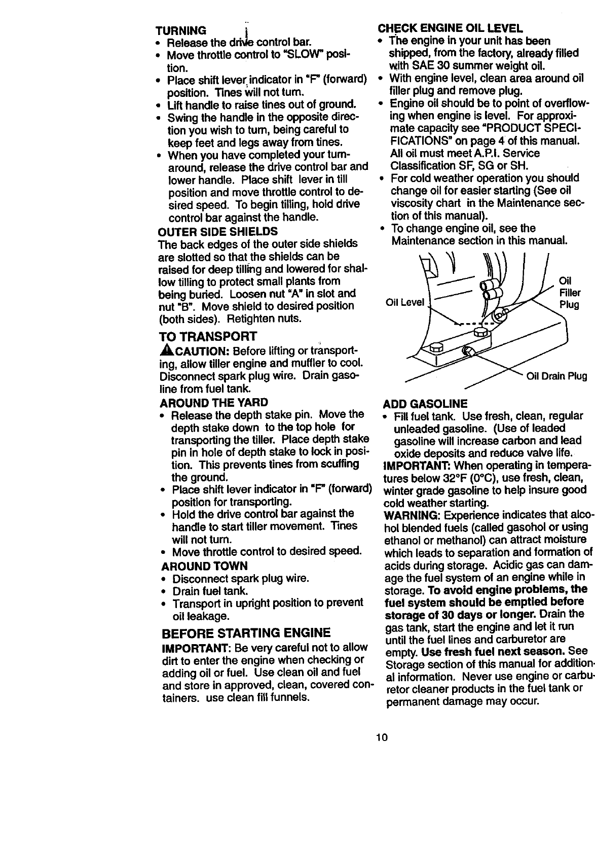 Warranty service is available by returning the Craftsman Tiller to the nearest Sears ser-
