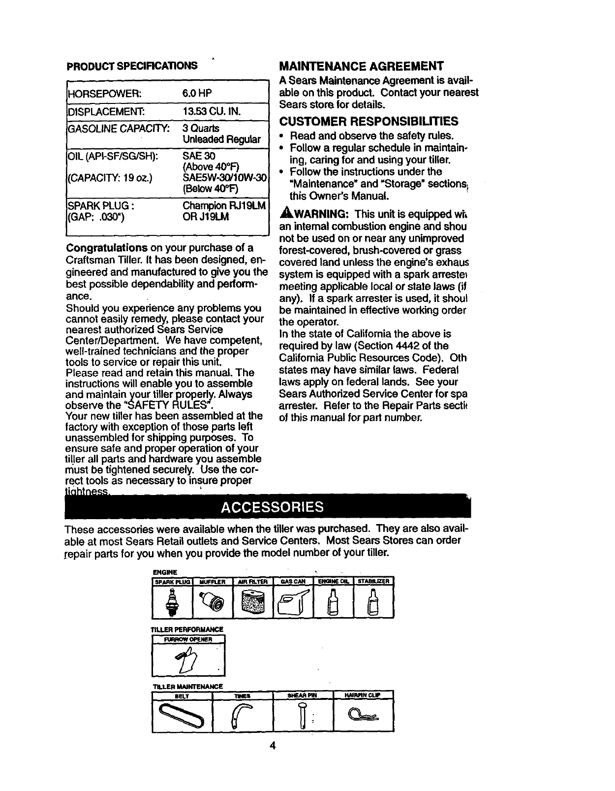 purchase, when this Craftsman Tiller is maintained, lubr