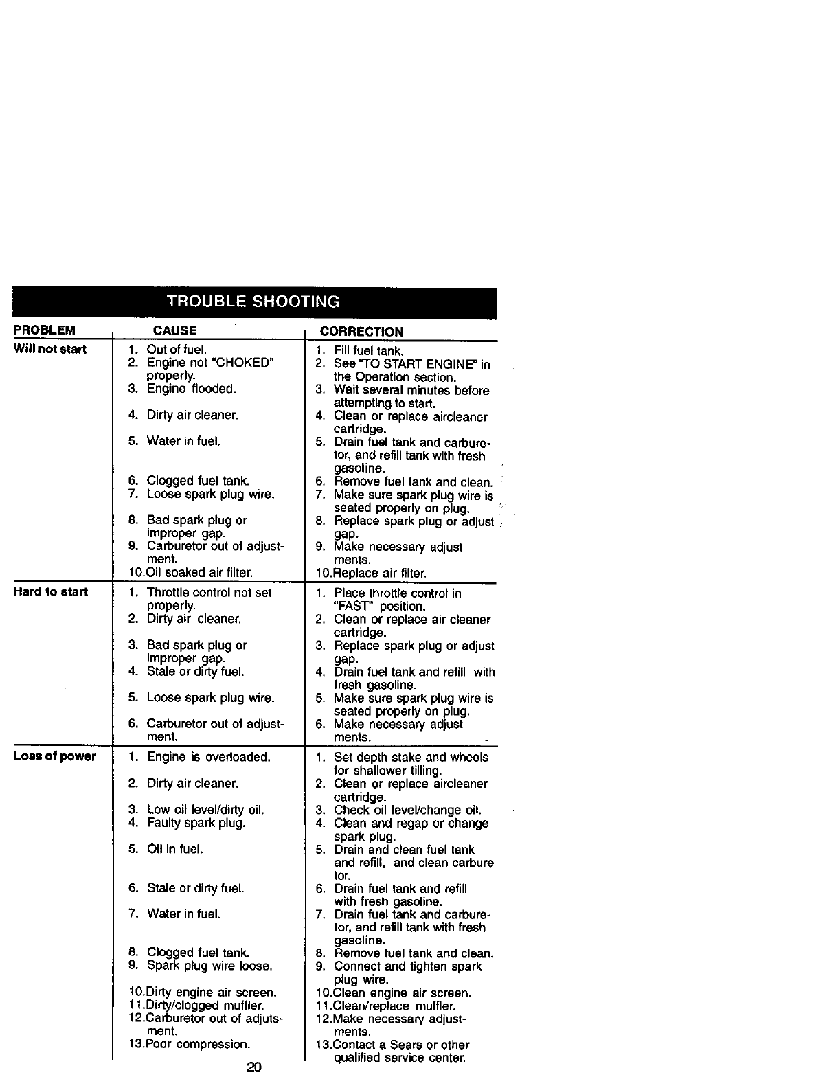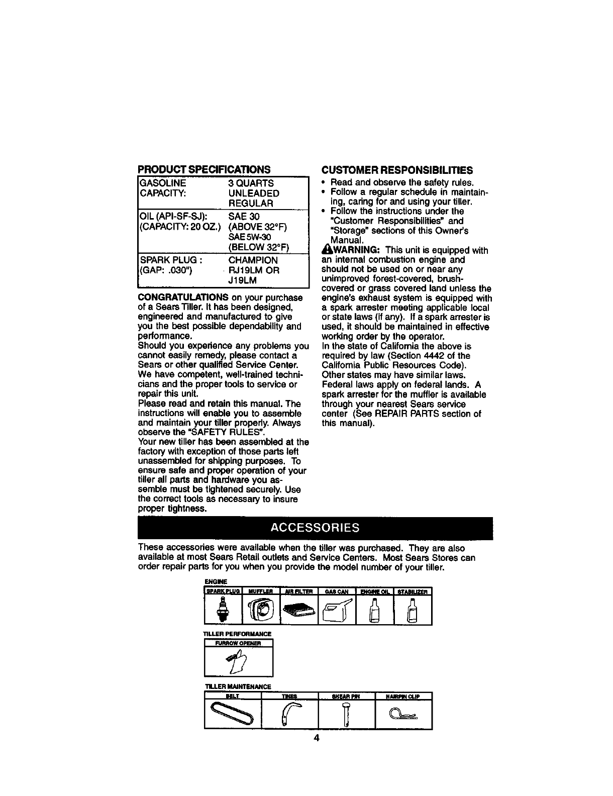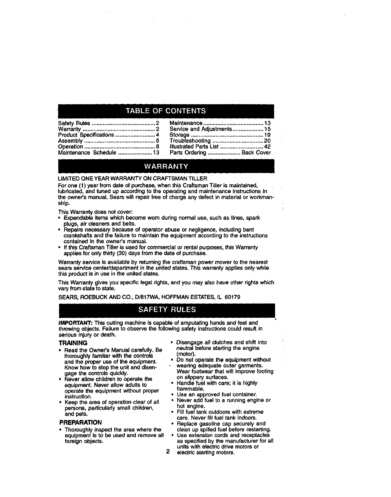 LIMITED ONE YEARWARRANTY ON CRAFTSMAN TILLER