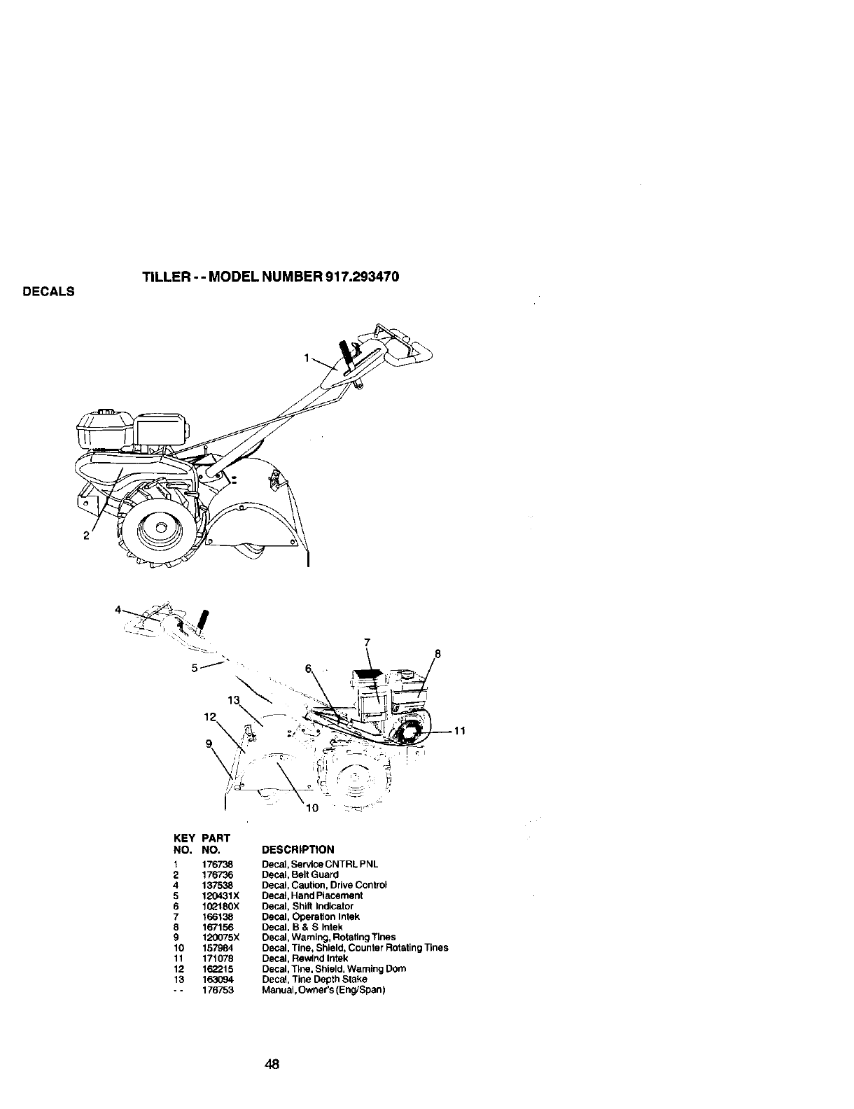 User Manual: Craftsman 917293470 917293470 CRAFTSMAN REAR TINE TILLER - Manuals and Guides View the owners manual for your CRAFTSMAN REAR TINE TILLER #917293470. Home:Lawn & Garden Parts:Craftsman Parts:Craftsman REAR TINE TILLER Manual