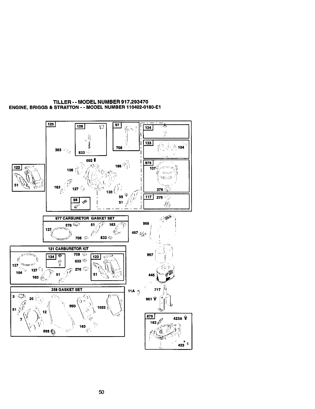 423 690349 Screw Air Cleaner Base) 836A 693624 Screw (Mounting)