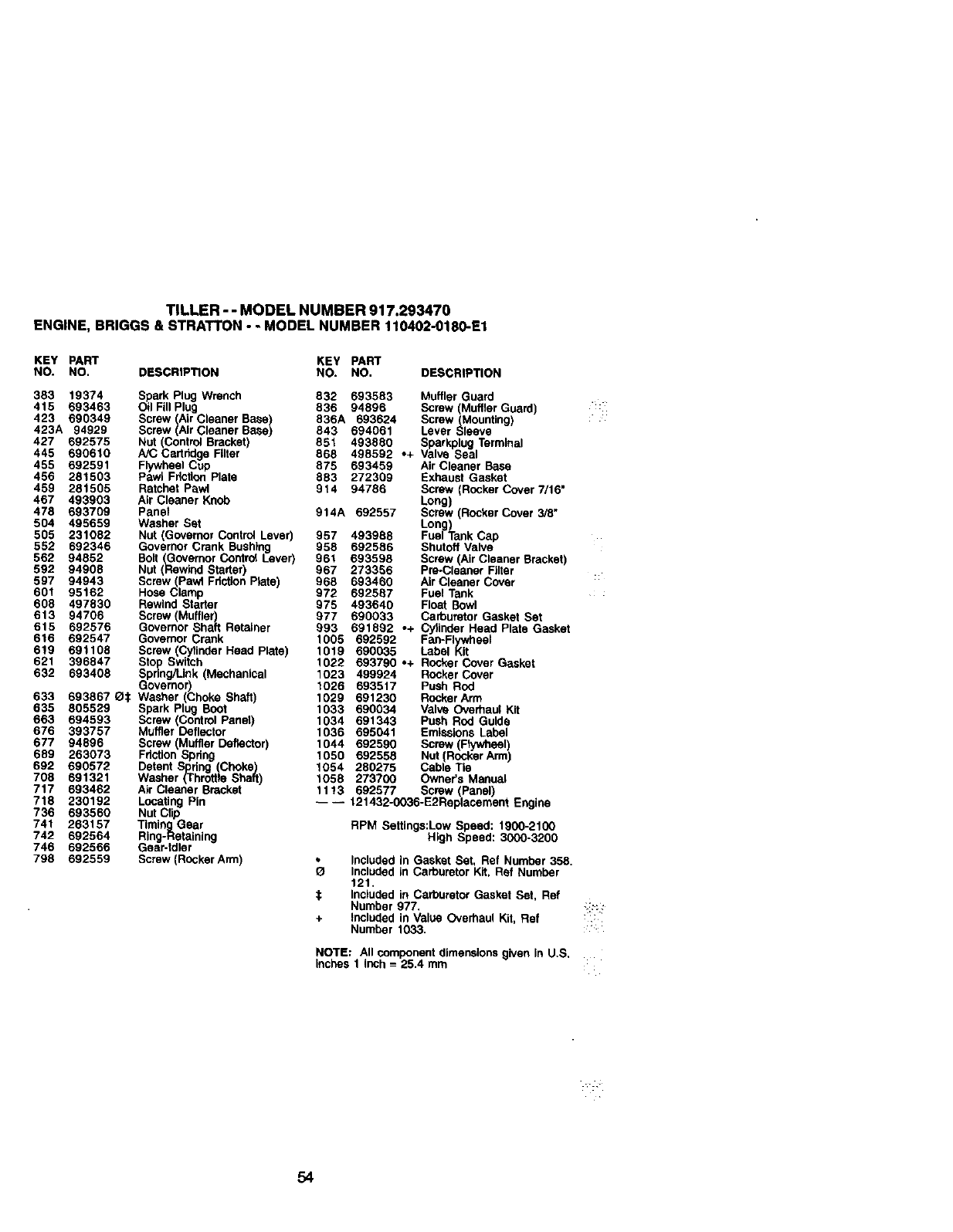 60 391101 Starter Rope Gdp RPM Settings:Low Speed: 1900-2100
