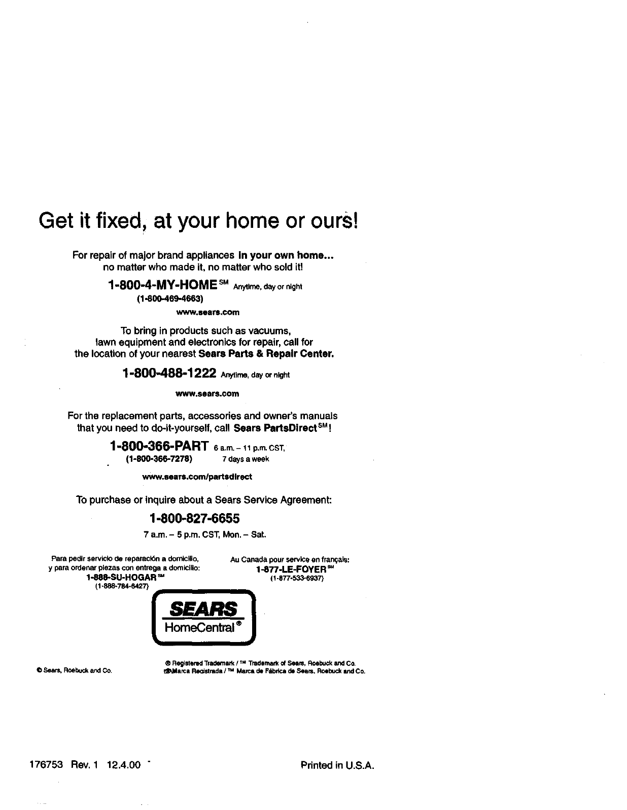 176753 Rev, 1 12,4.00 "Printed in U.S.A.