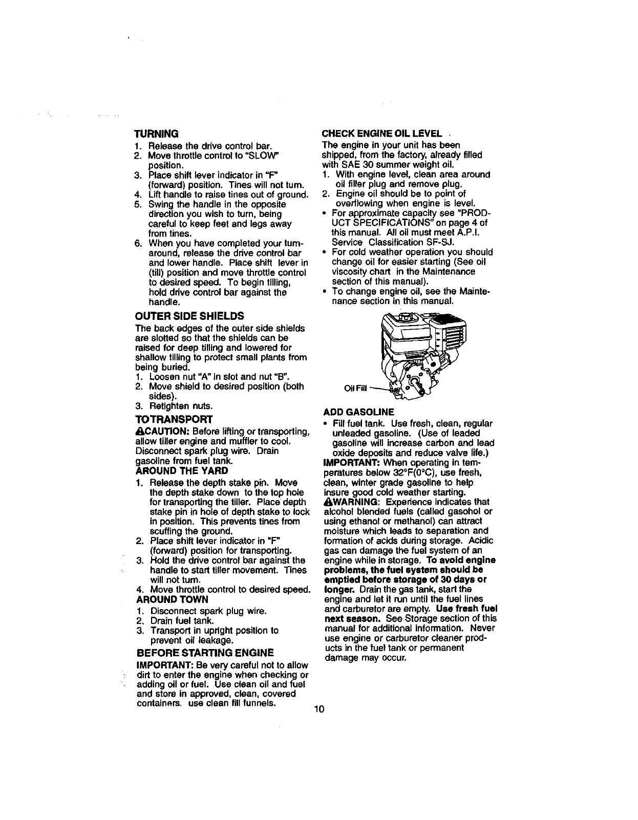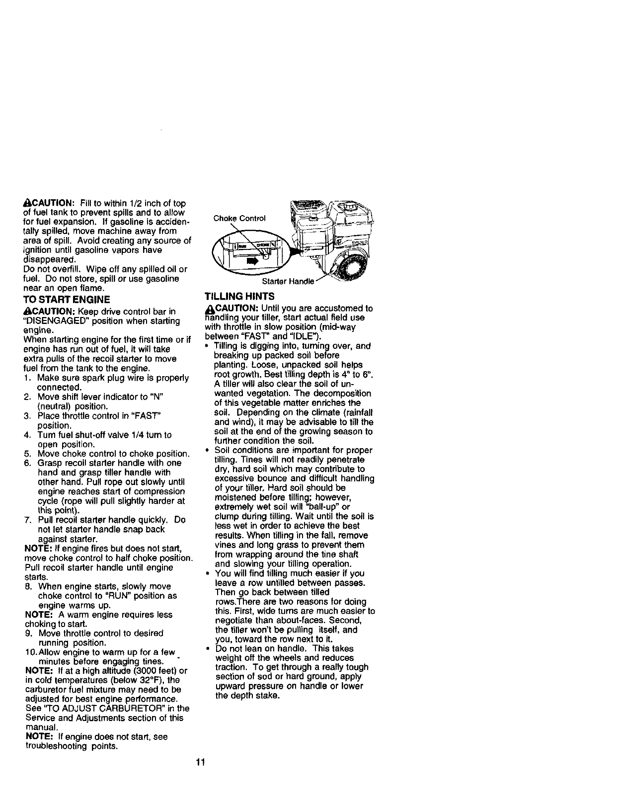 care. Never fillfuel tank indoors.