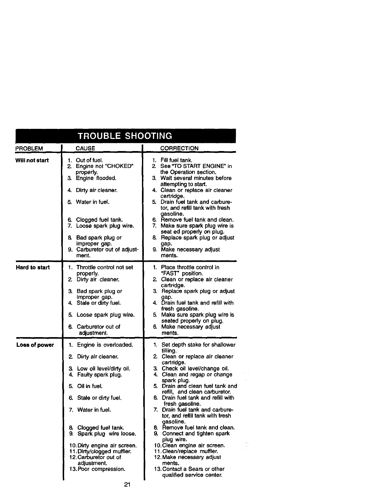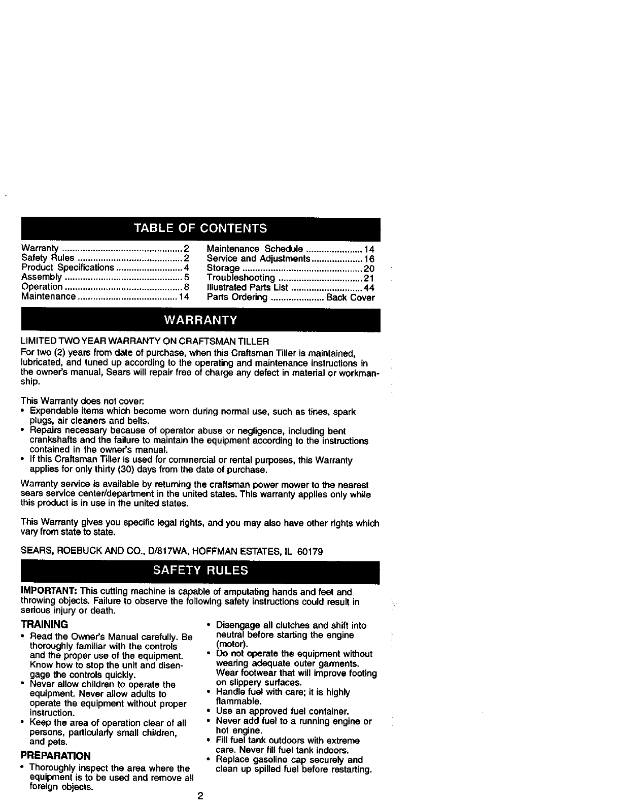 LIMITED TWO YEAR WARRANTY ON CRAFTSMAN TILLER
