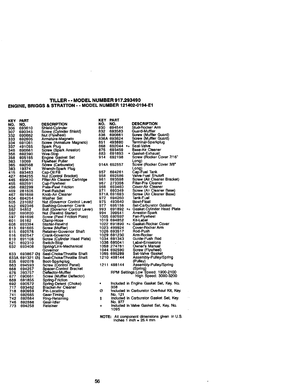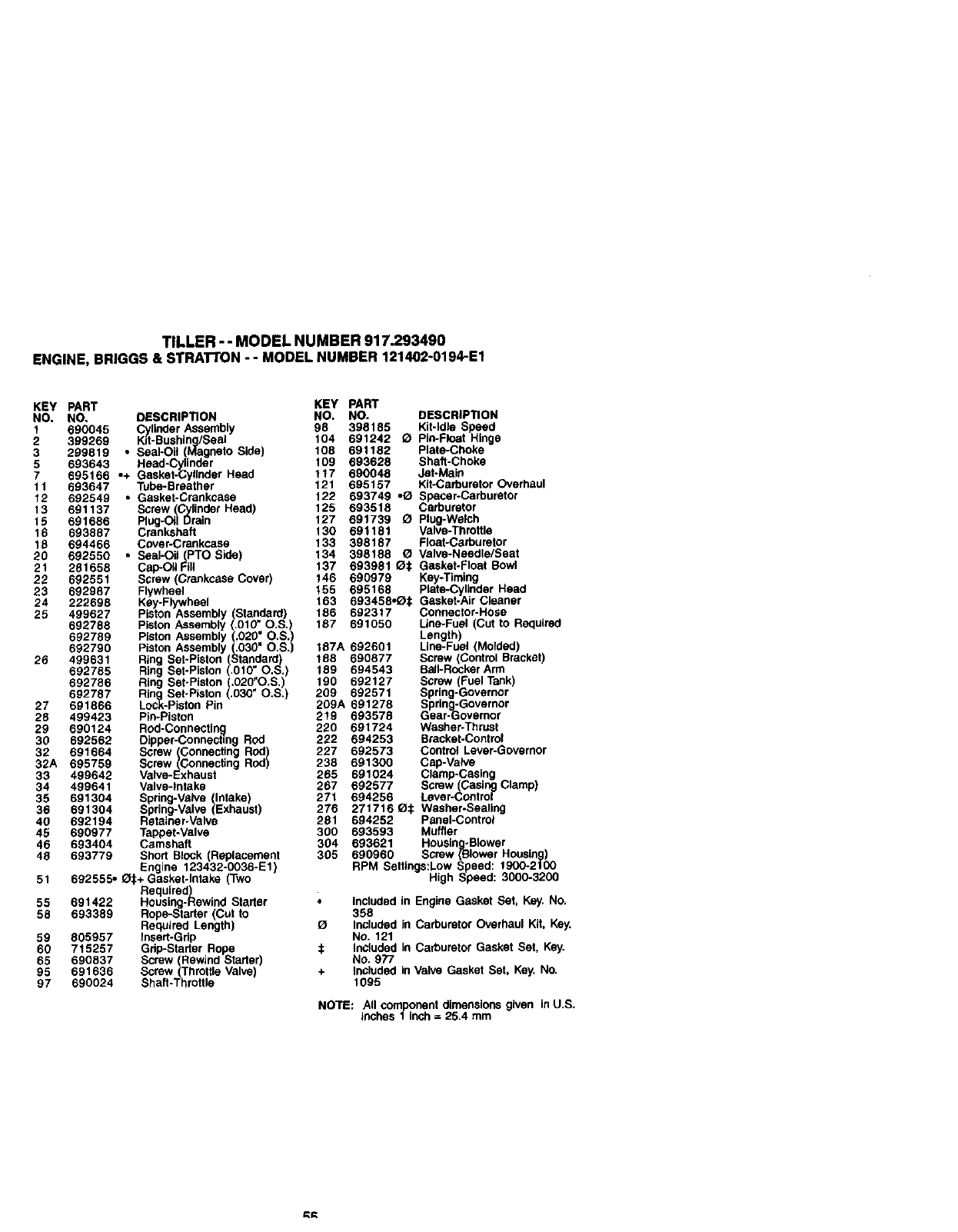 676 393757 Deflector-Muffler RPM Settings:Low Speed: 1900-2100
