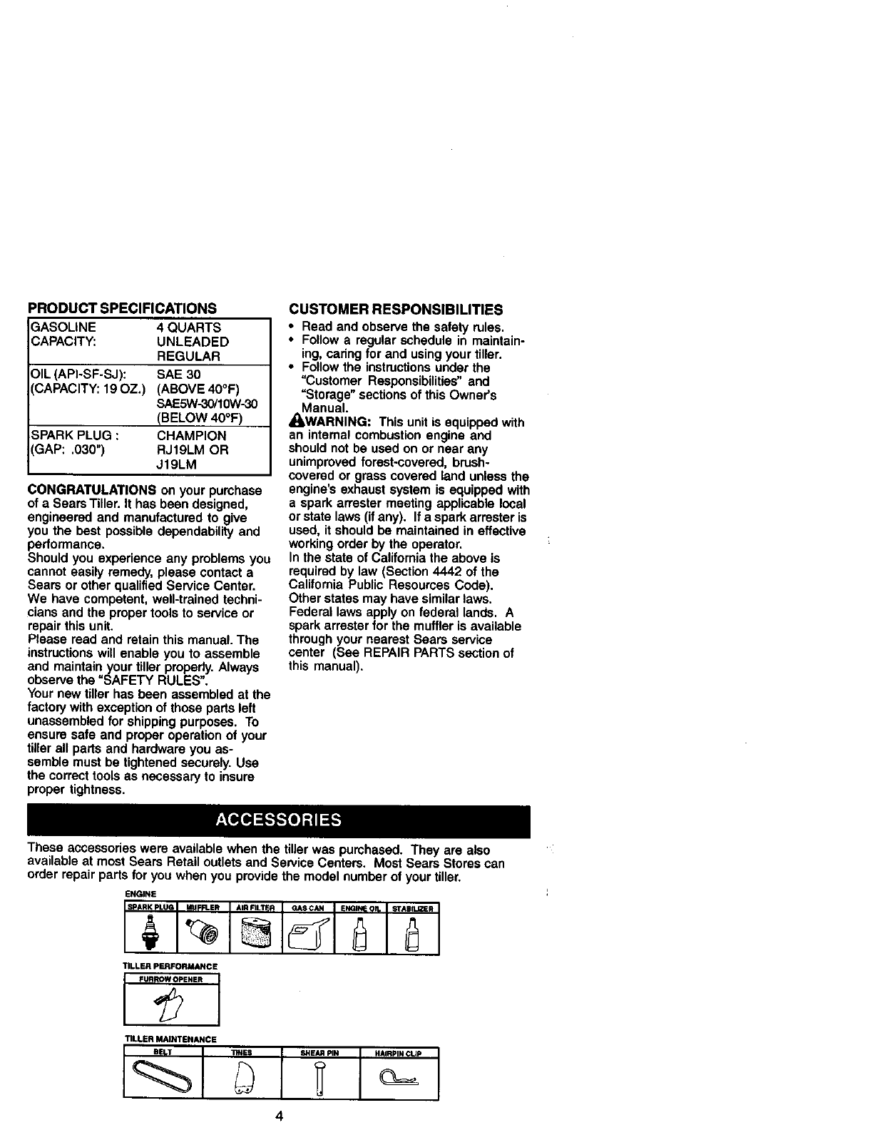 CRAFTSMAN Rear Tine, Gas Tiller Manual L0101118 CRAFTSMAN Rear Tine, Gas Tiller Owner's Manual, CRAFTSMAN Rear Tine, Gas Tiller installation guides