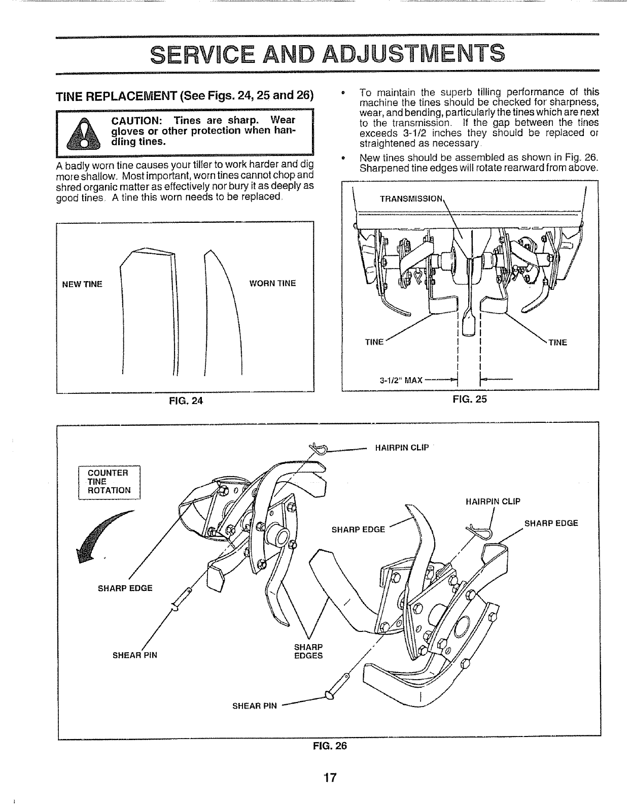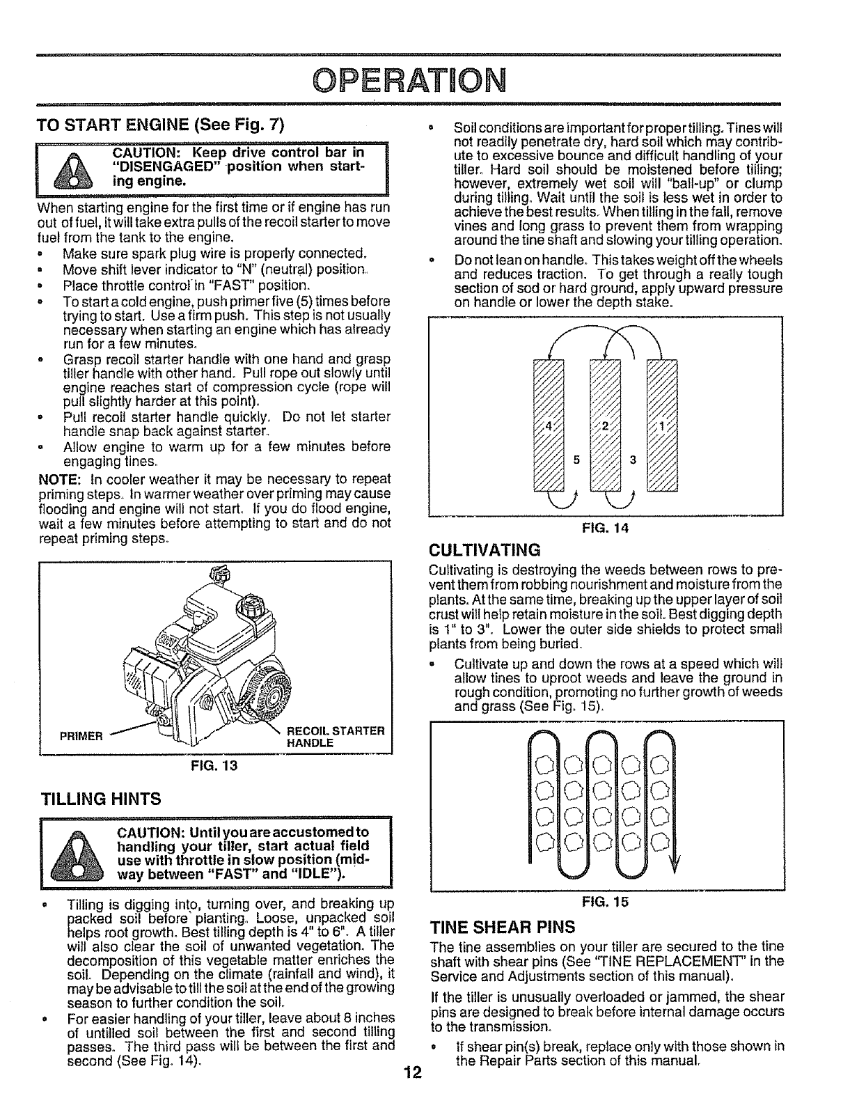•Be careful when tilling in hard ground. The tines may