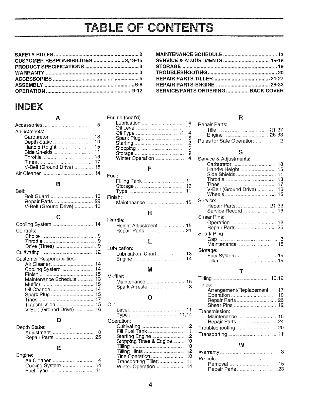 CRAFTSMAN Rear Tine, Gas Tiller Manual L0804441 CRAFTSMAN Rear Tine, Gas Tiller Owner's Manual, CRAFTSMAN Rear Tine, Gas Tiller installation guides
