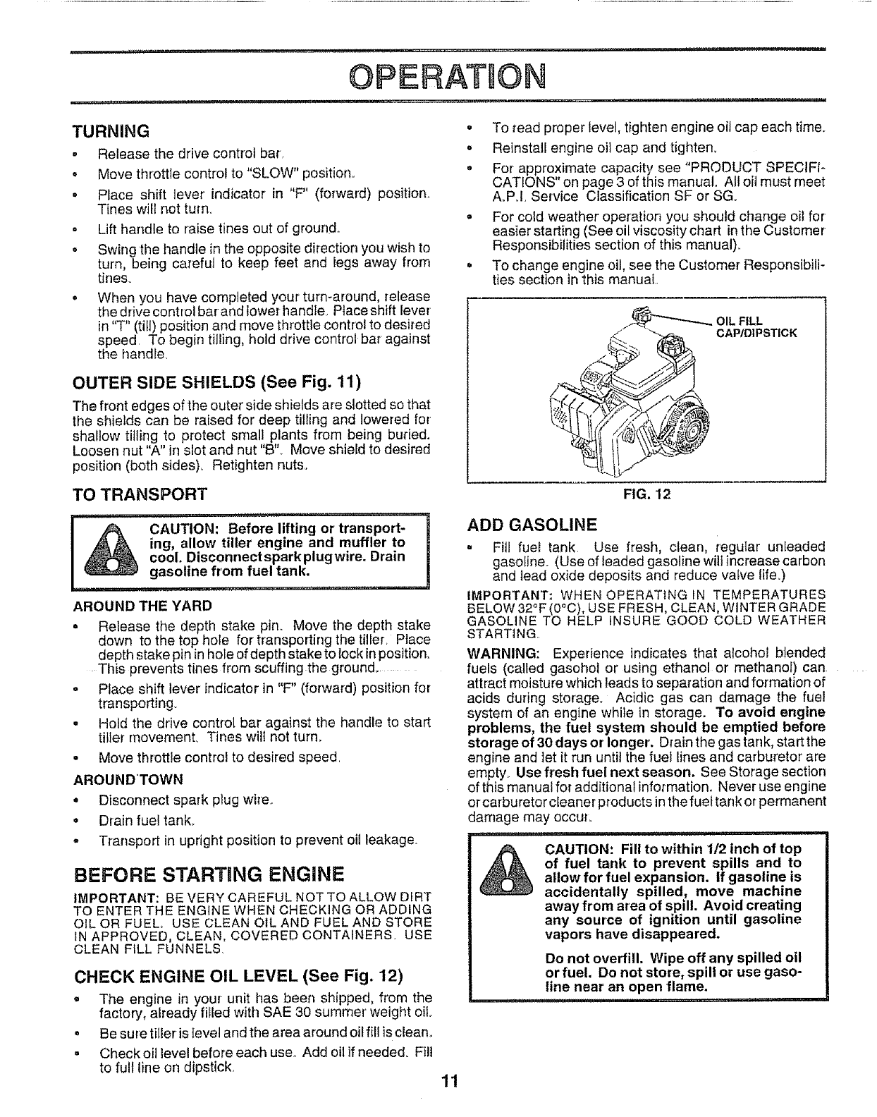 .Fill fuel tank outdoors with extreme care. Never fi!I fuel