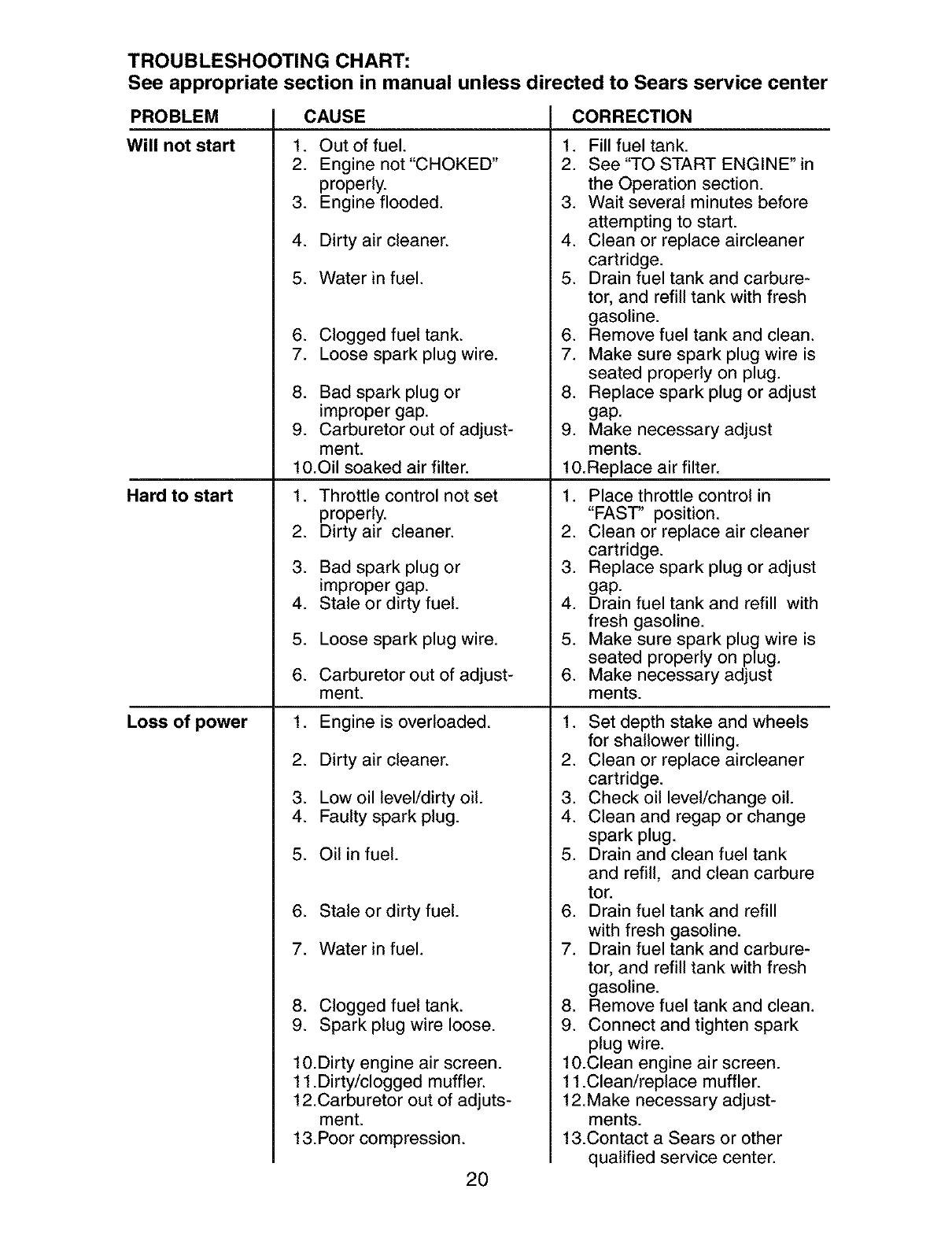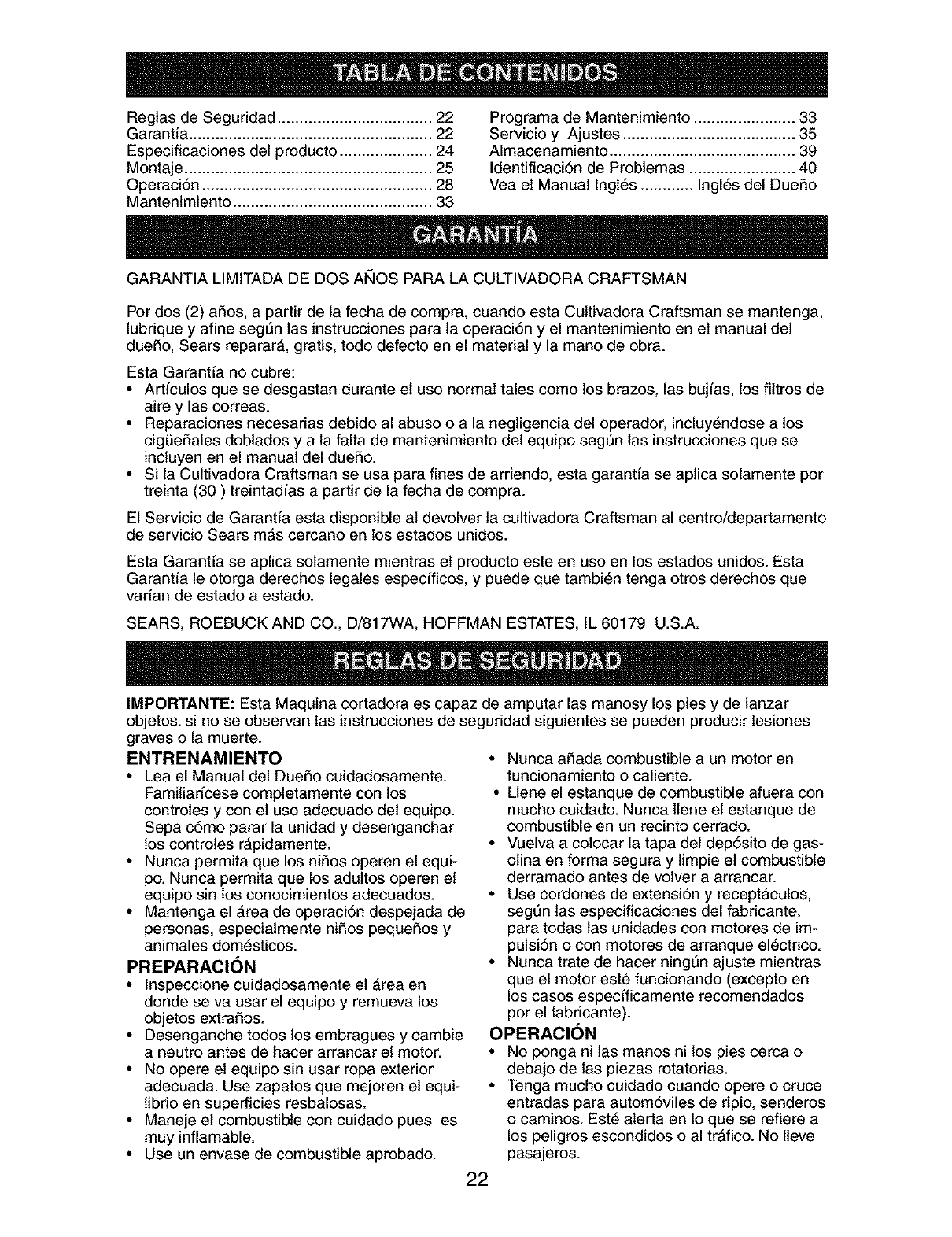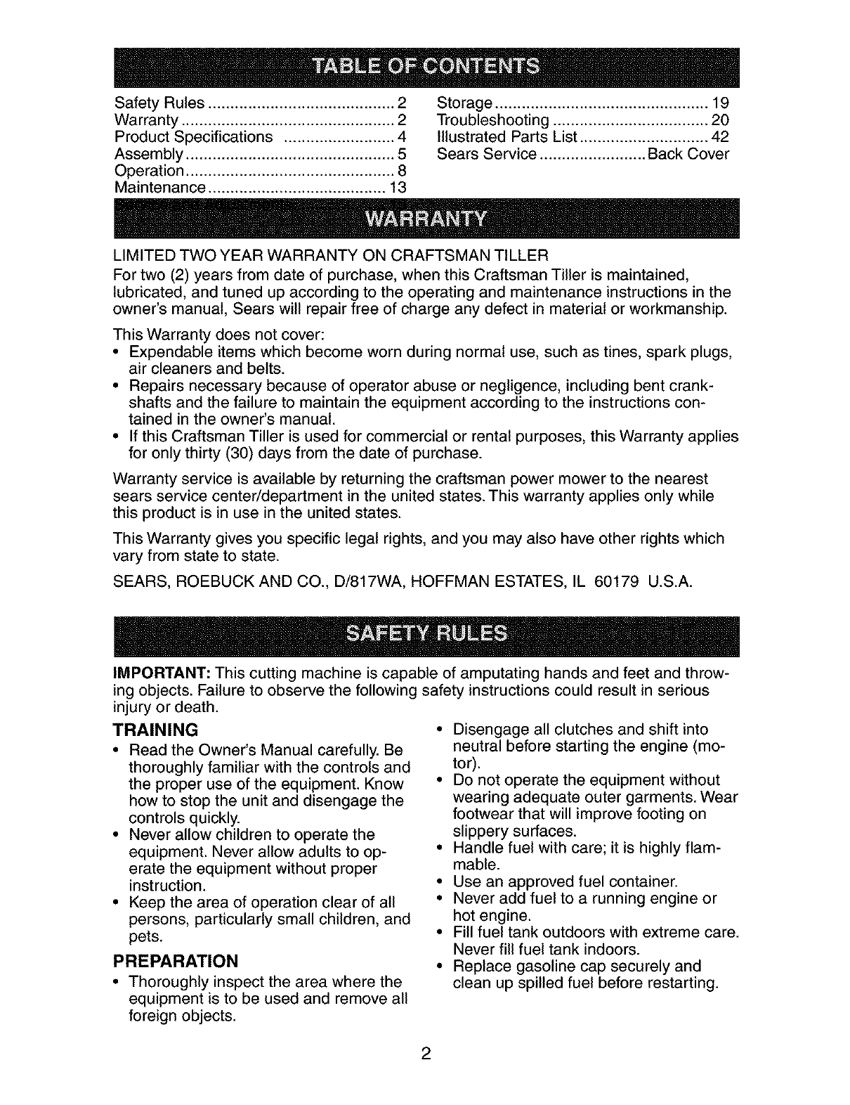 LIMITED TWO YEAR WARRANTY ON CRAFTSMAN TILLER