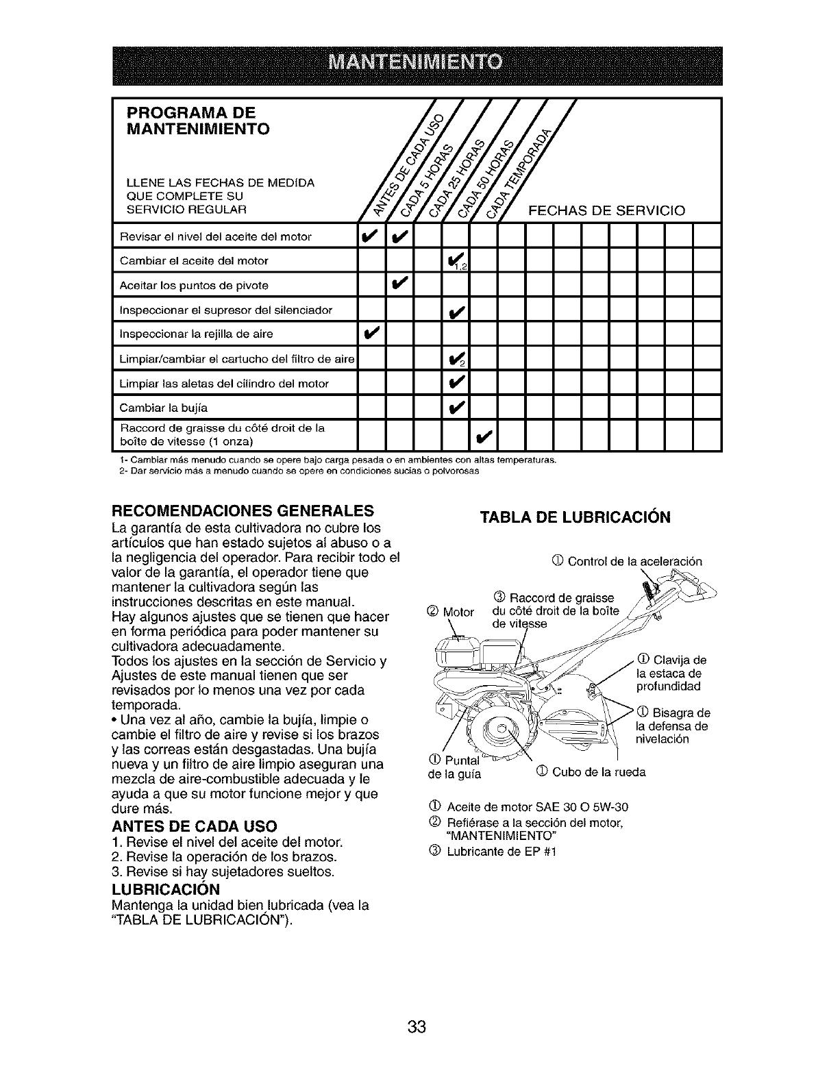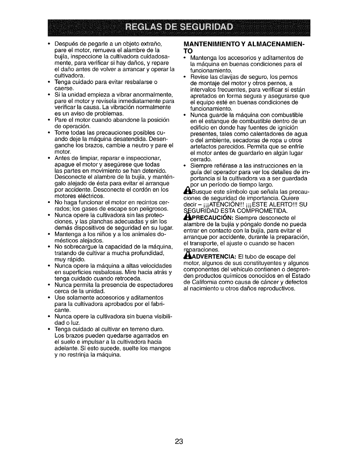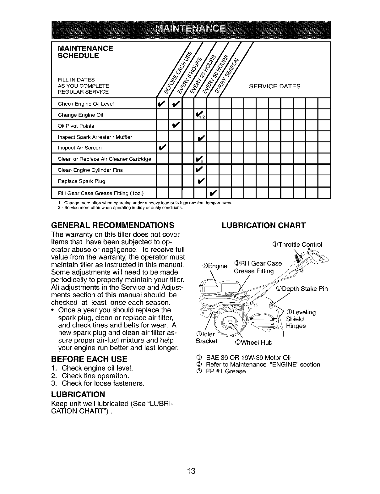 LIMITED TWO YEAR WARRANTY ON CRAFTSMAN TILLER