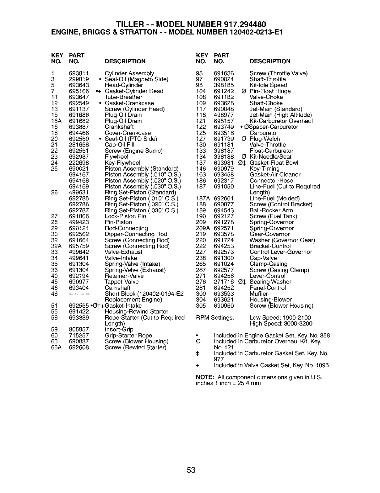 Included in Carburetor Overhaul Kit, Key.