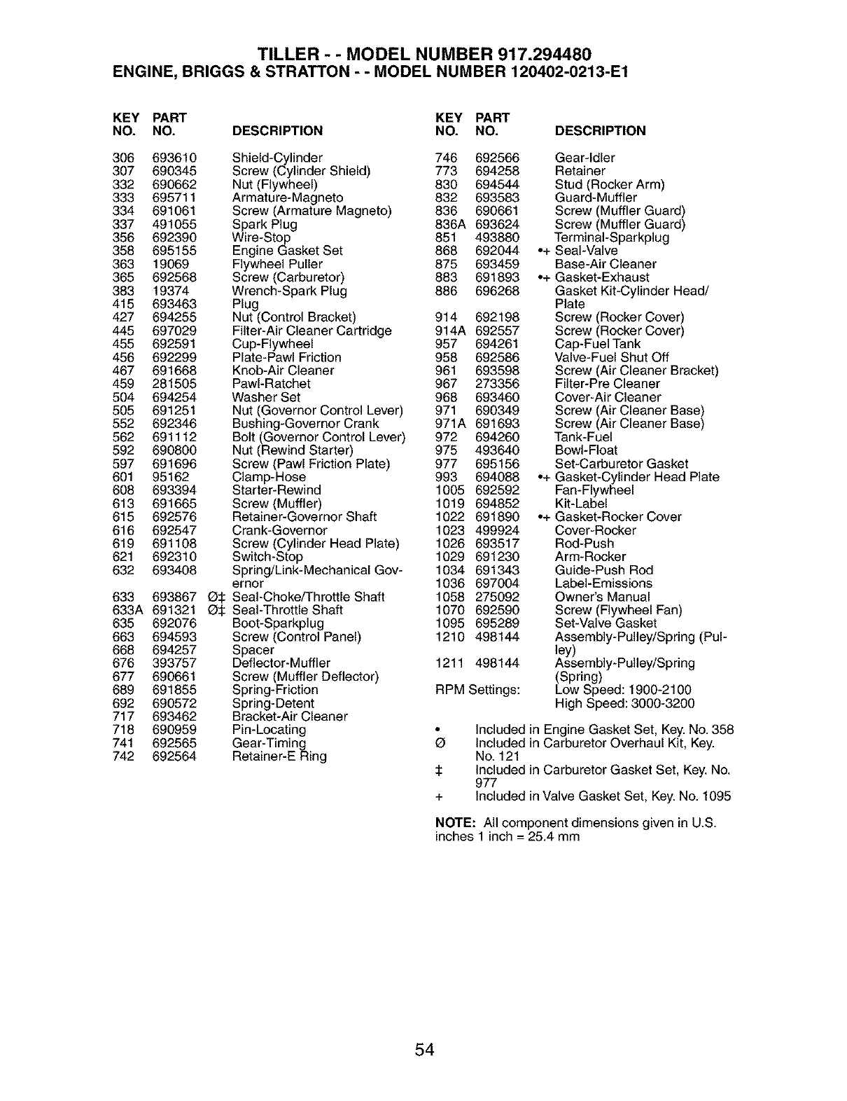689 691855 Spring-Friction RPM Settings: