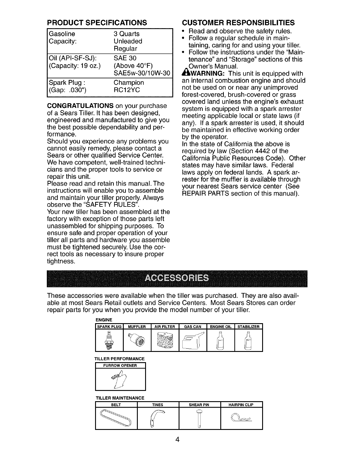 Craftsman 917294480 User Manual TILLER Manuals And Guides L0305399