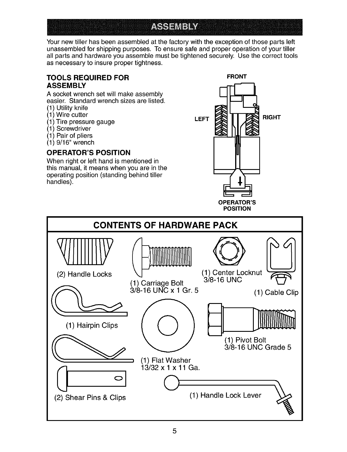 Assembly ............................................... 5 Sears Service ........................ Back Cover