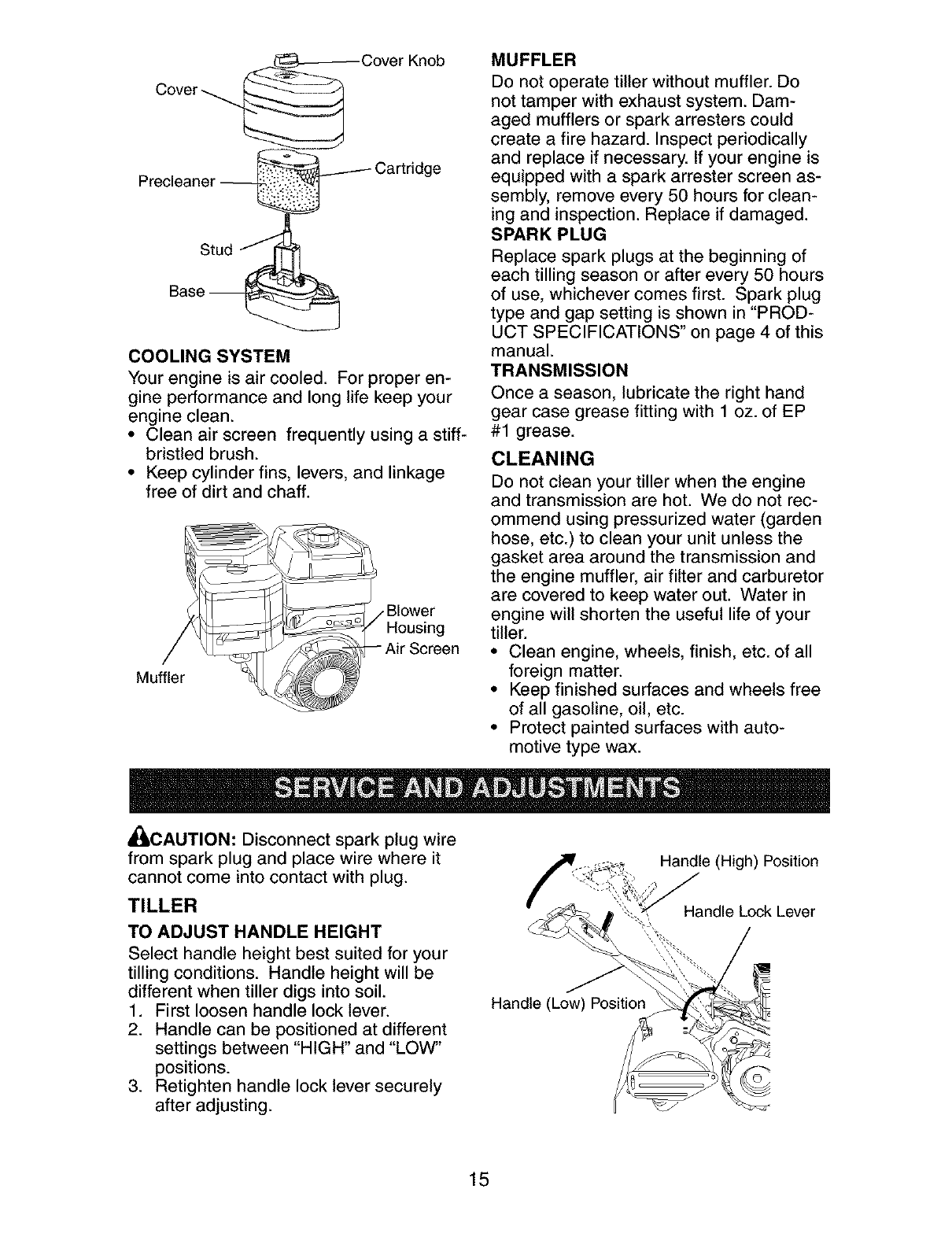 CRAFTSMAN Rear Tine, Gas Tiller Manual L0305399 CRAFTSMAN Rear Tine, Gas Tiller Owner's Manual, CRAFTSMAN Rear Tine, Gas Tiller installation guides