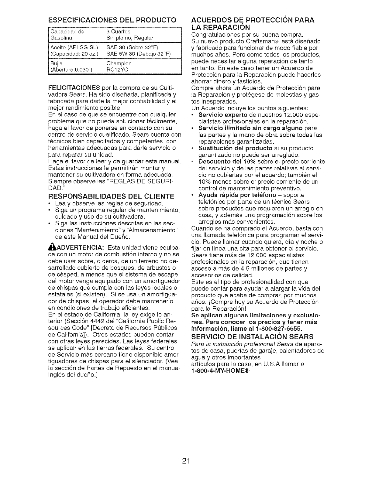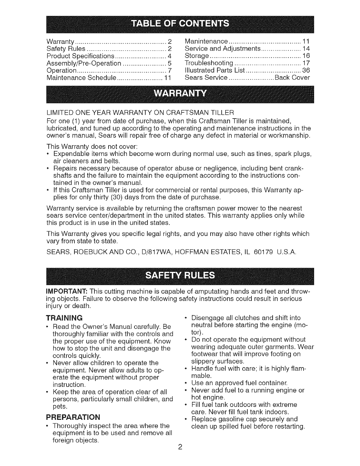 Craftsman 917299110 User Manual FRONT TINE TILLER Manuals And Guides L0803652