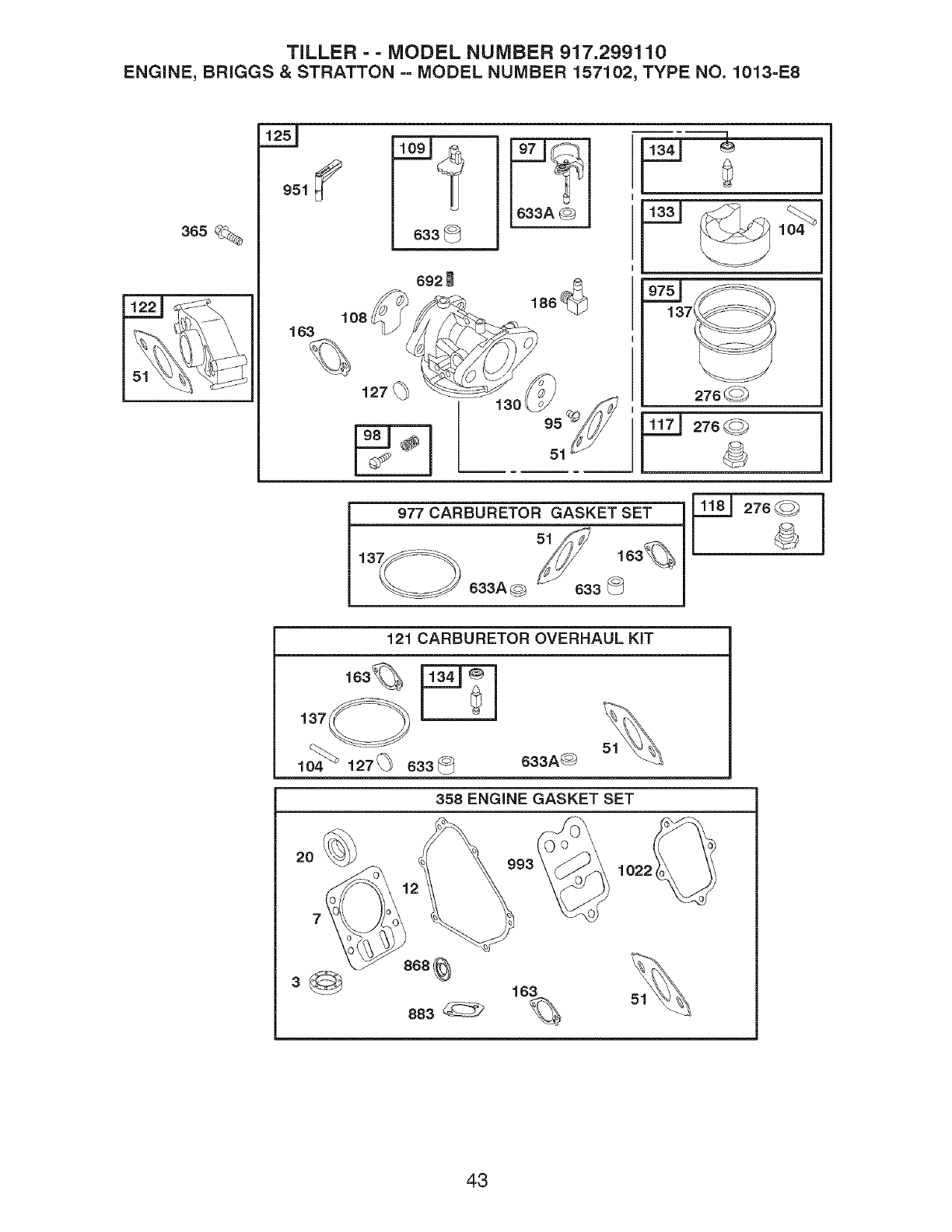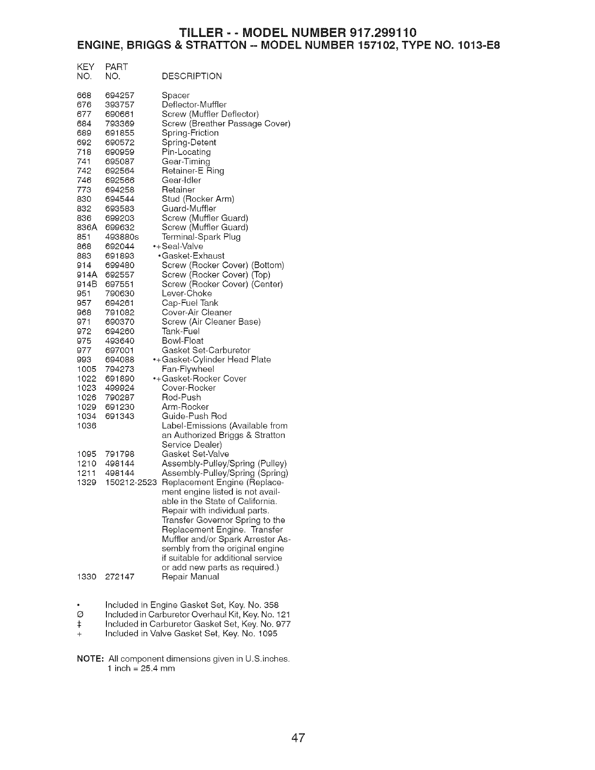 Included in Carburetor Overhaul Kit, Key. No. 121