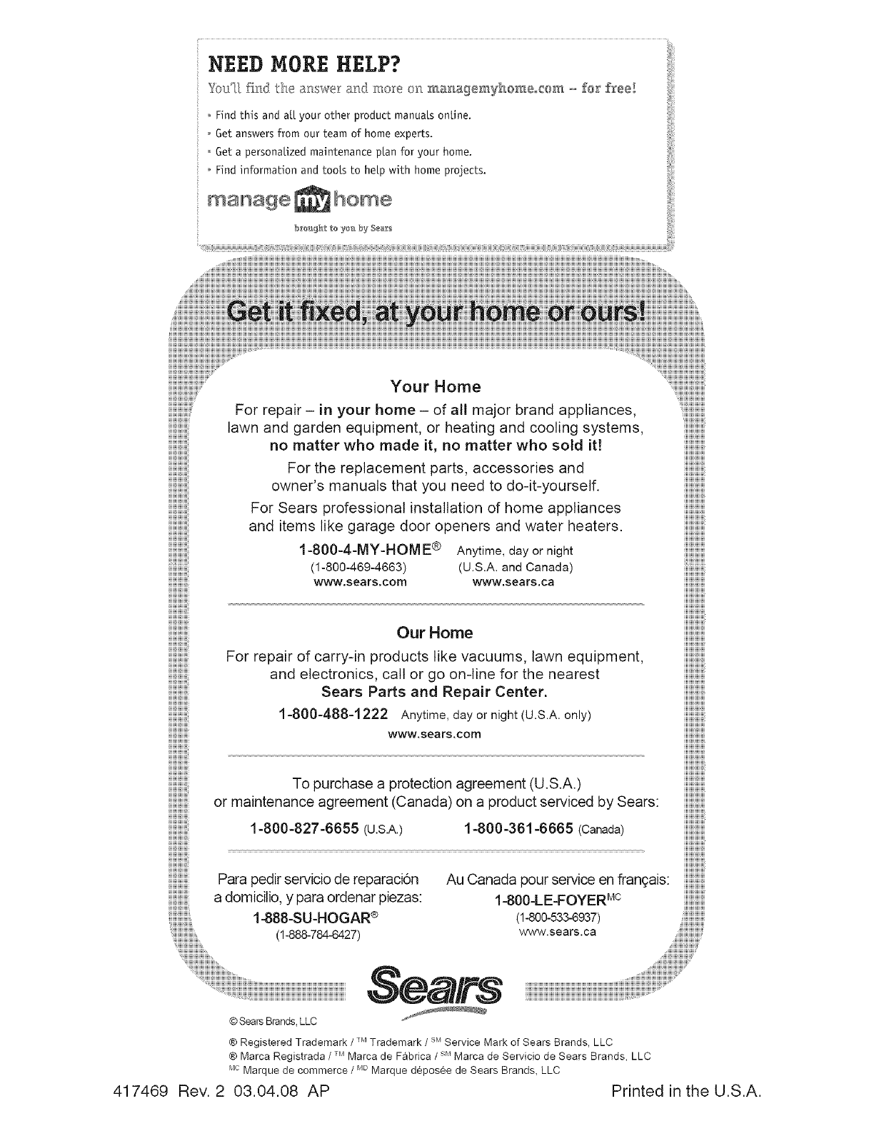 ® Registered Trademark /T[,1Trademark /SM Service Mark of Sears Brands, LLC