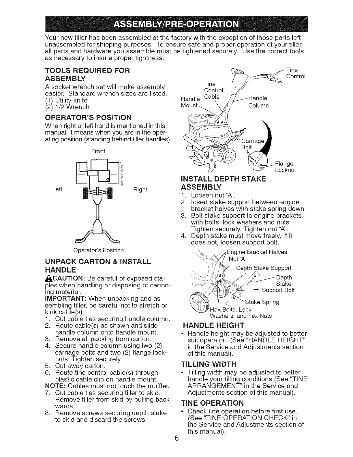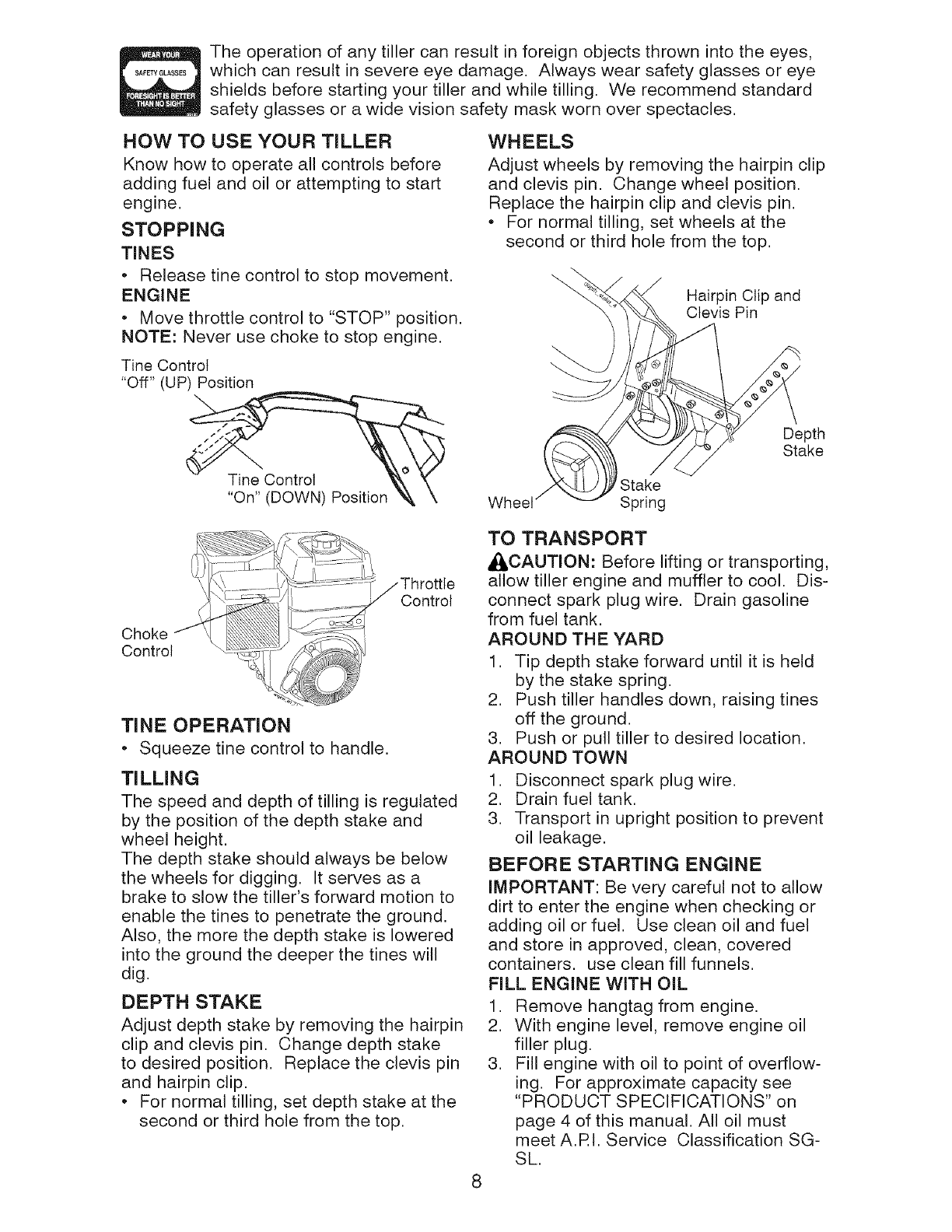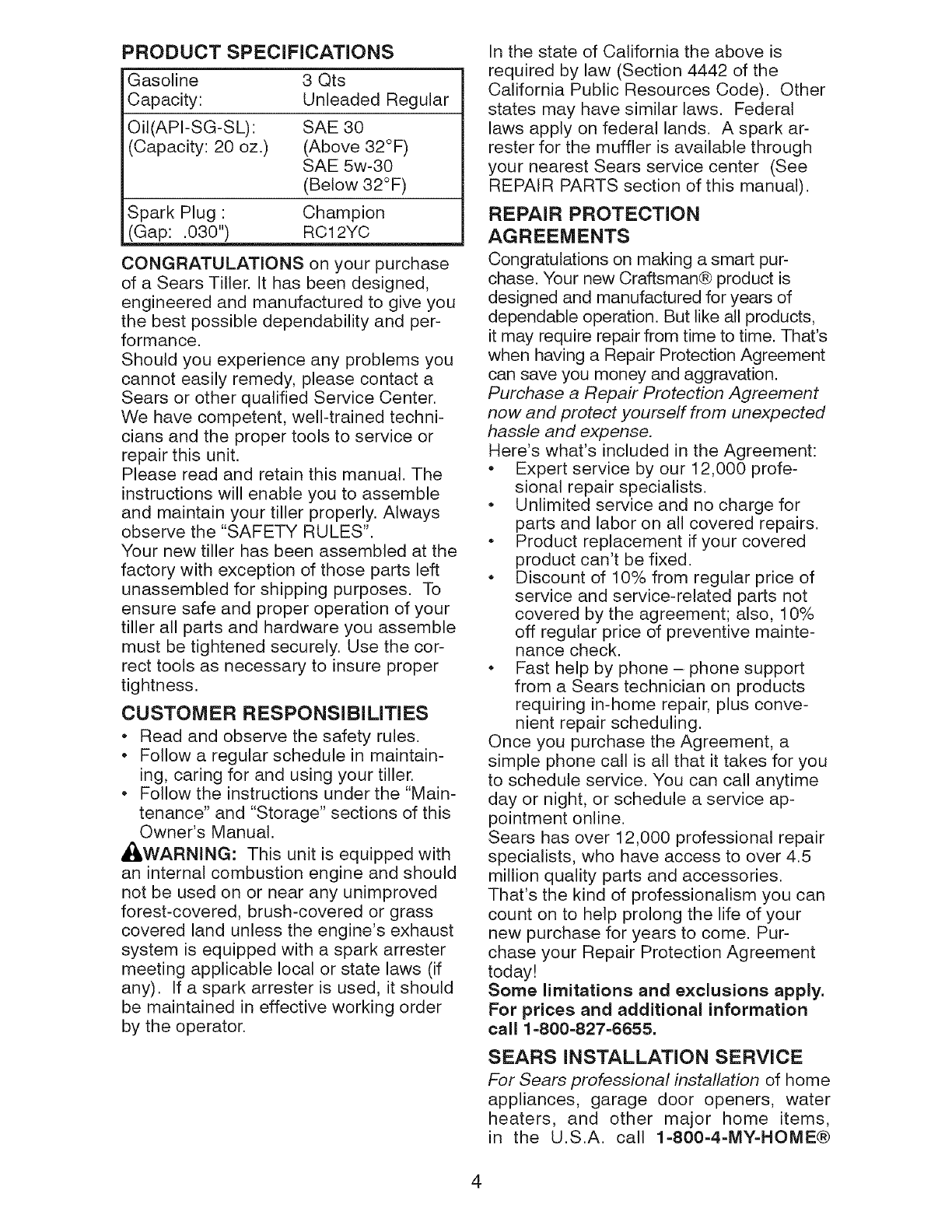 CRAFTSMAN Front Tine, Gas Tiller Manual L0803652 CRAFTSMAN Front Tine, Gas Tiller Owner's Manual, CRAFTSMAN Front Tine, Gas Tiller installation guides
