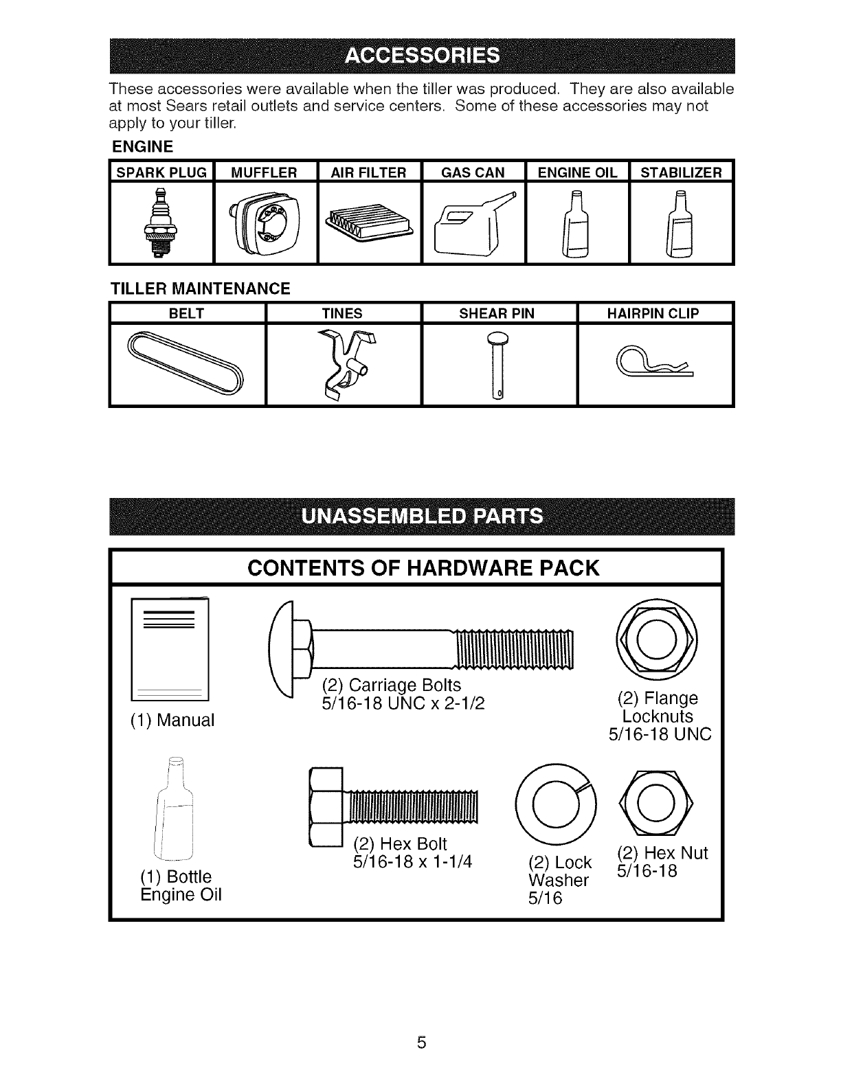 Expendableitemswhich becomeworn during normal use, such as tines, spark plugs,