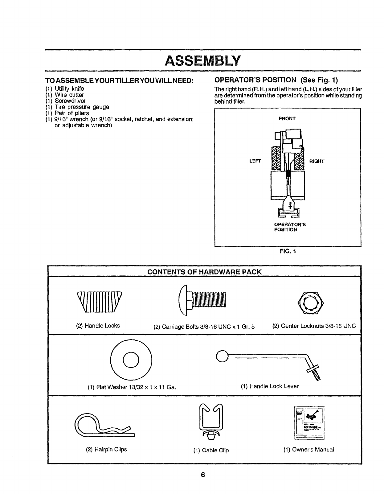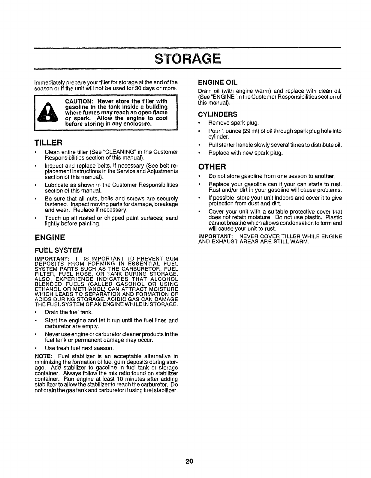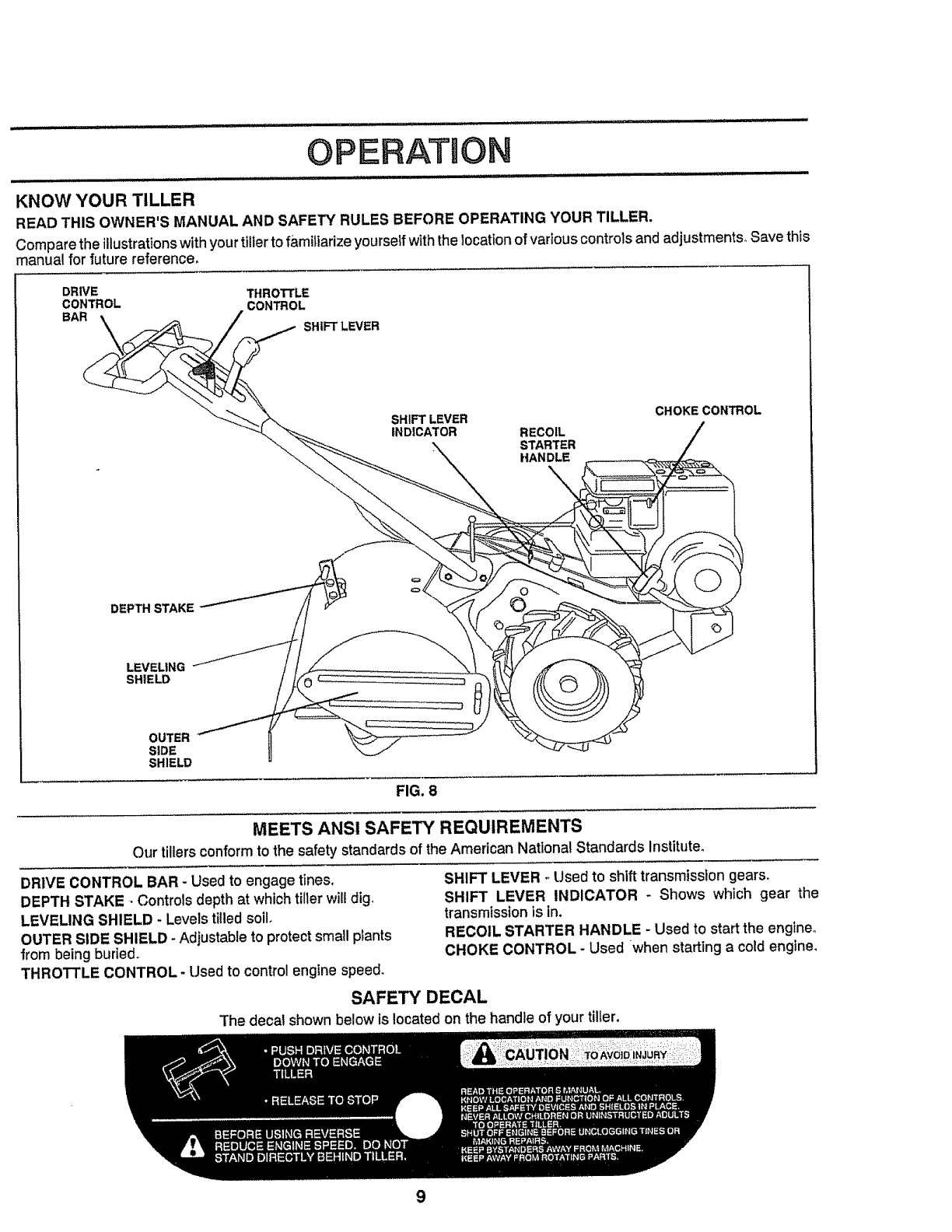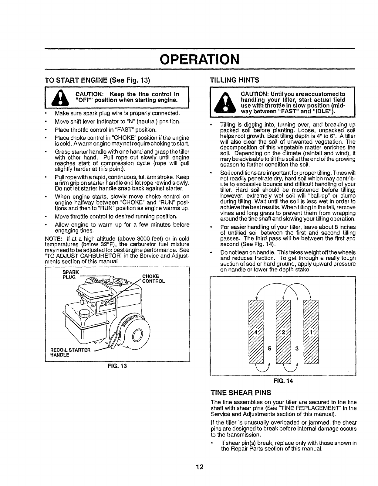 restartingand operatingthe tiller.