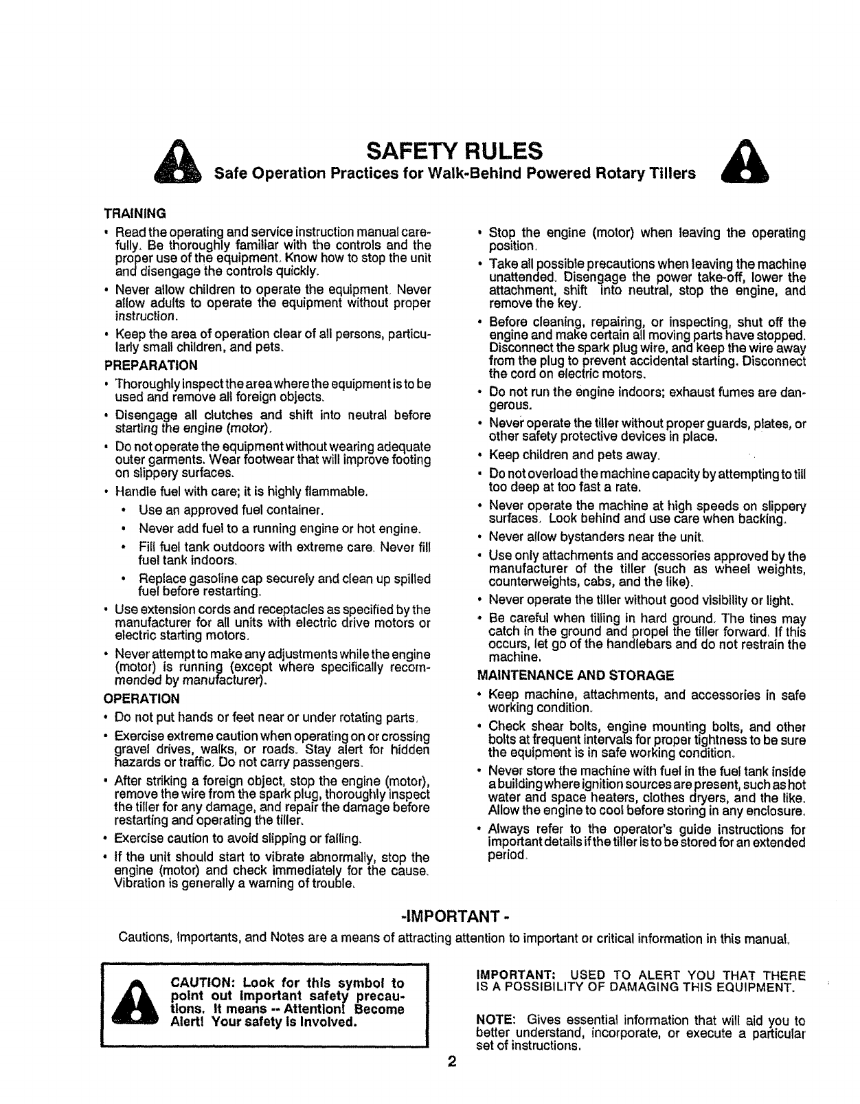 Safe Operation Practices for Walk-Behind Powered Rotary Tillers