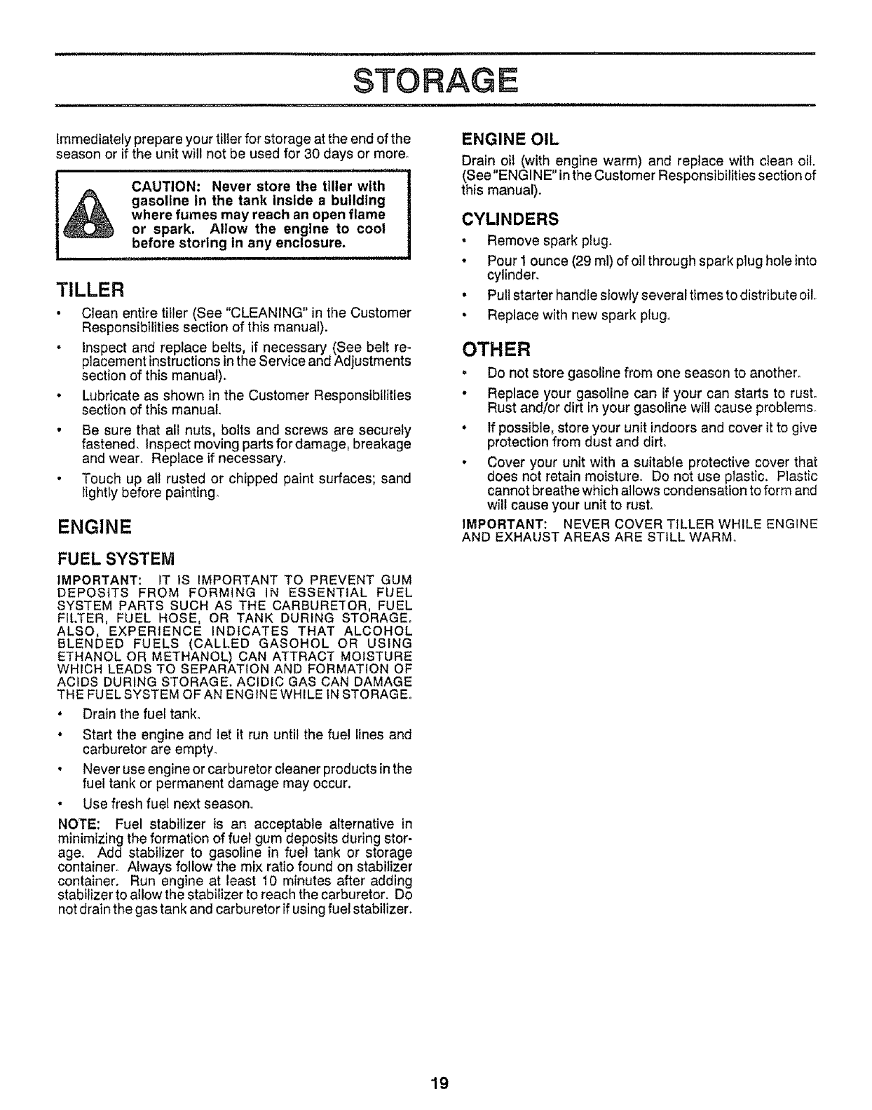 MAINTENANCE AND STORAGE