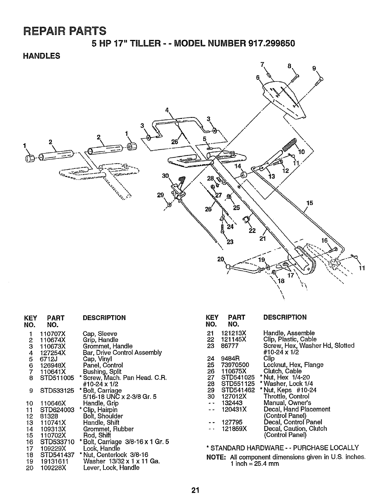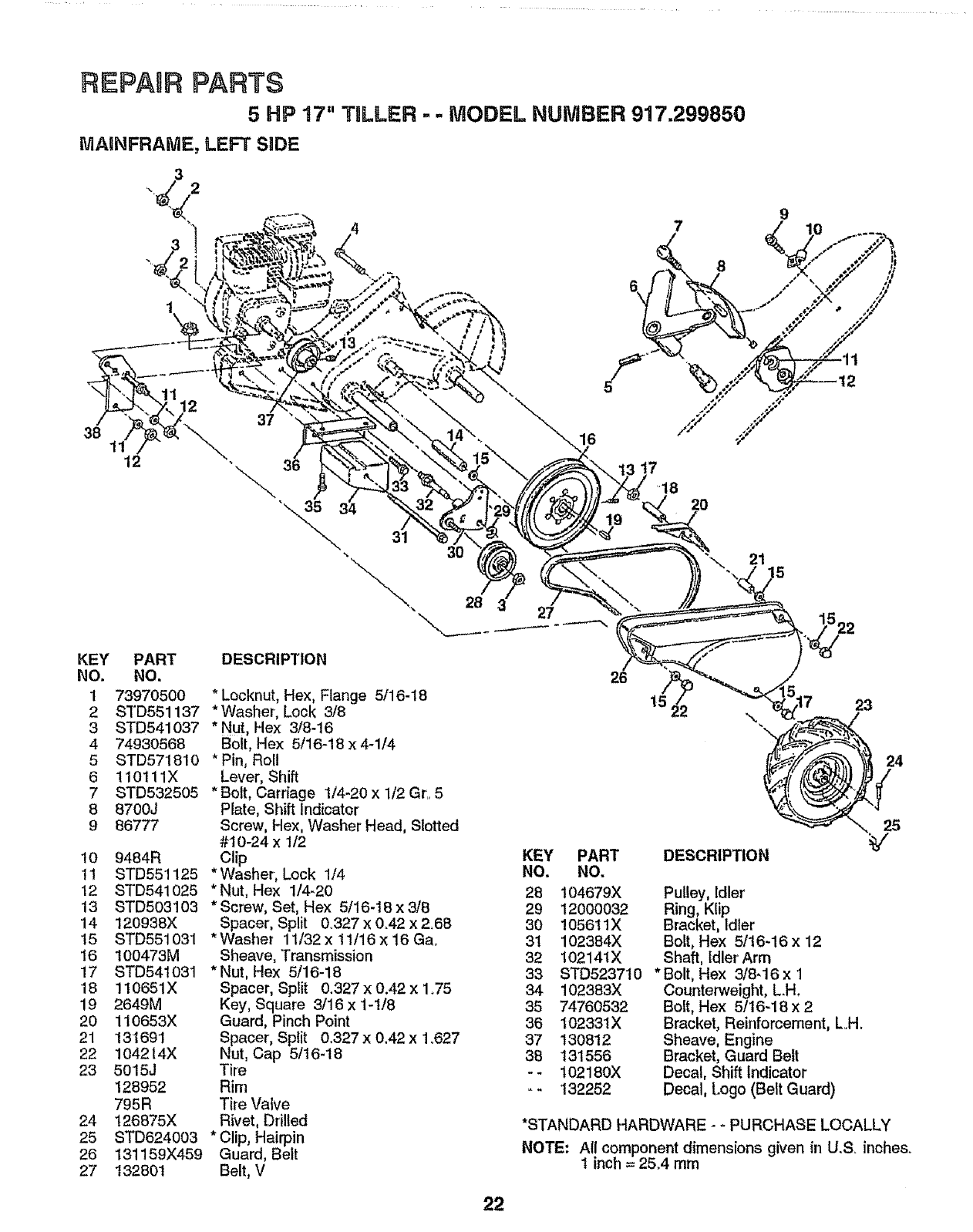 NOTE: All component dimensions given in U.S. inches
