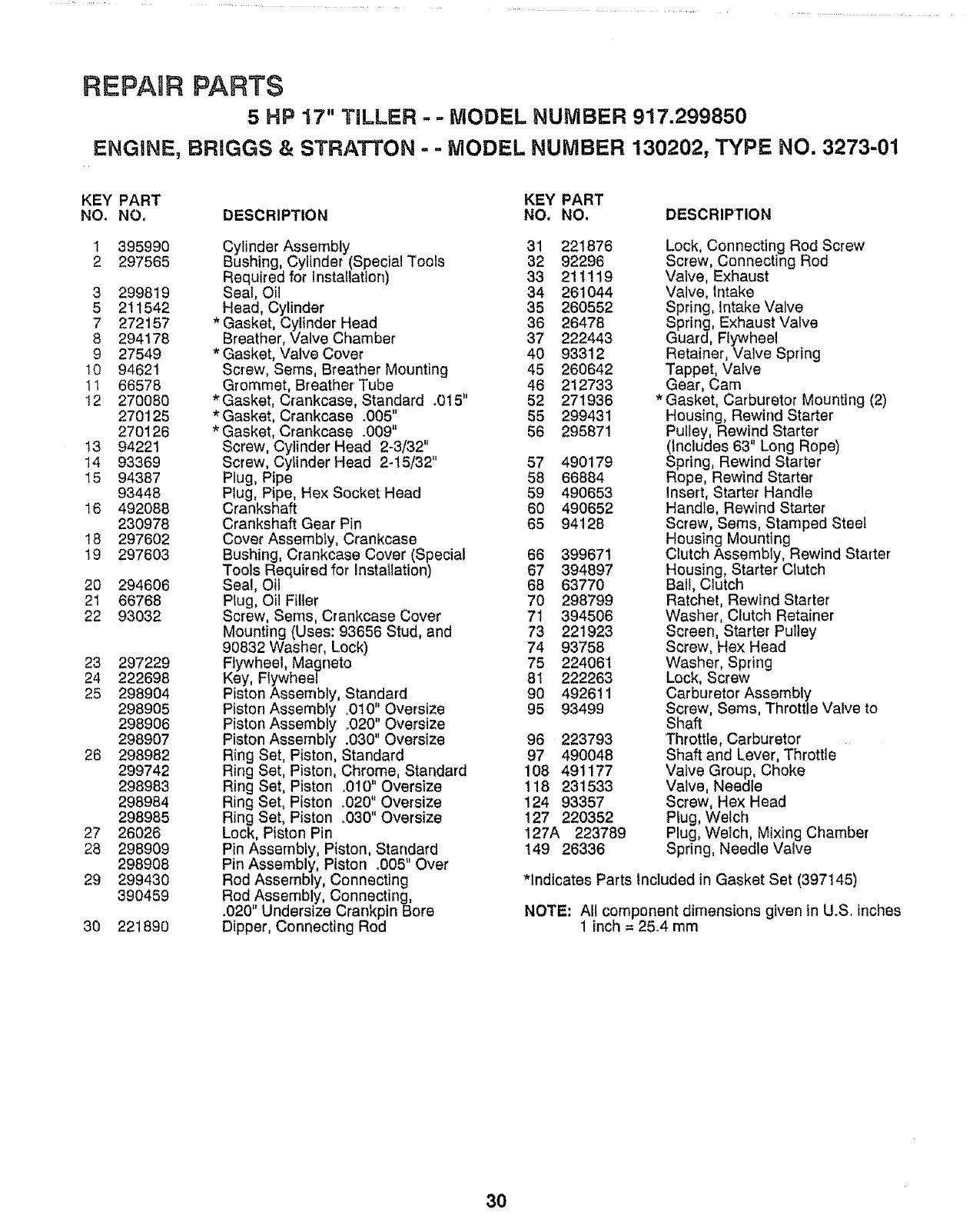 *Indicates Parts Included in Gasket Set (397145)