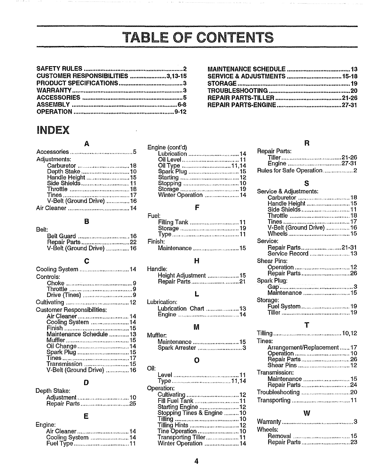 CRAFTSMAN Rear Tine, Gas Tiller Manual L0804442 CRAFTSMAN Rear Tine, Gas Tiller Owner's Manual, CRAFTSMAN Rear Tine, Gas Tiller installation guides