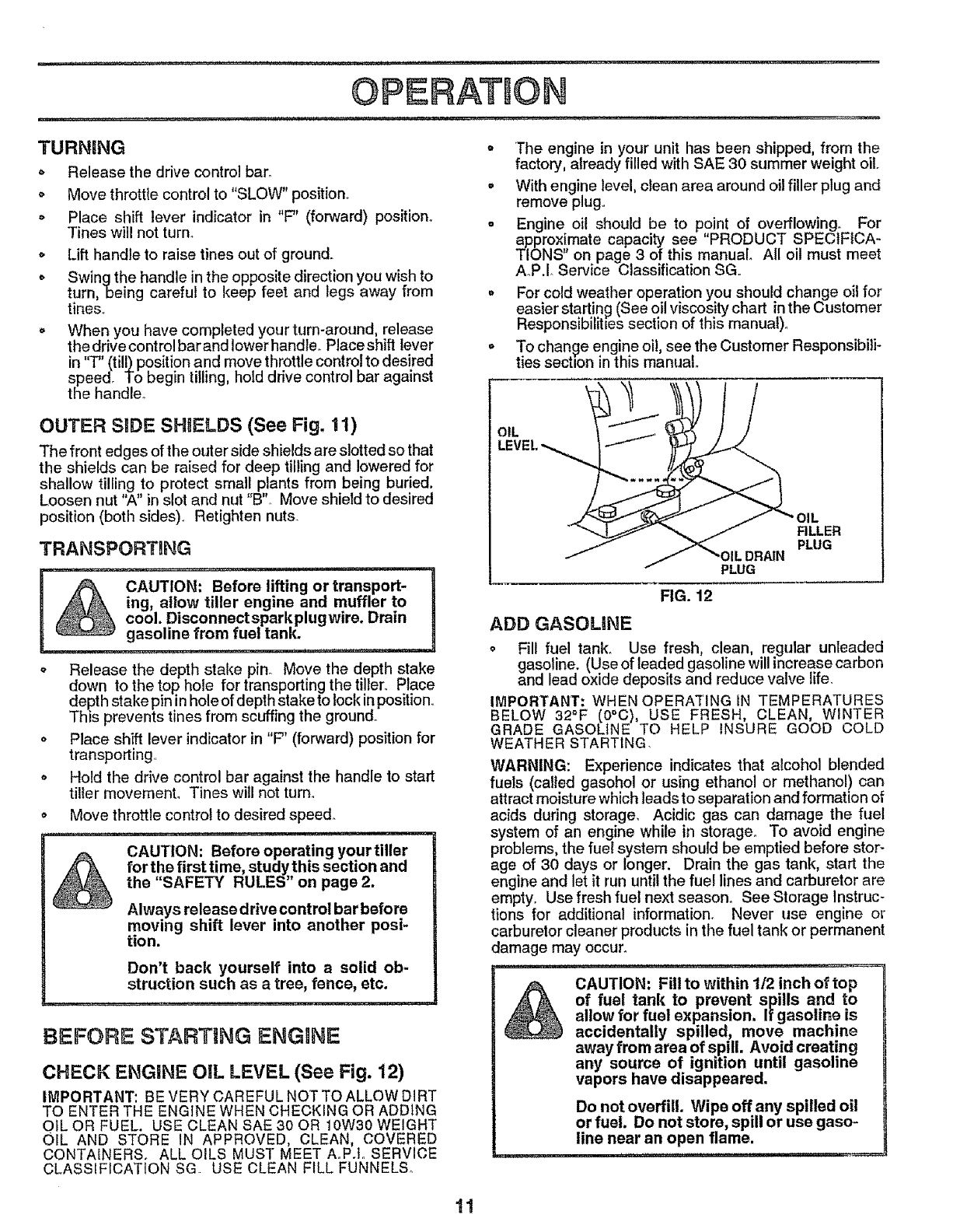 Never operate the tiller without proper guards, plates,