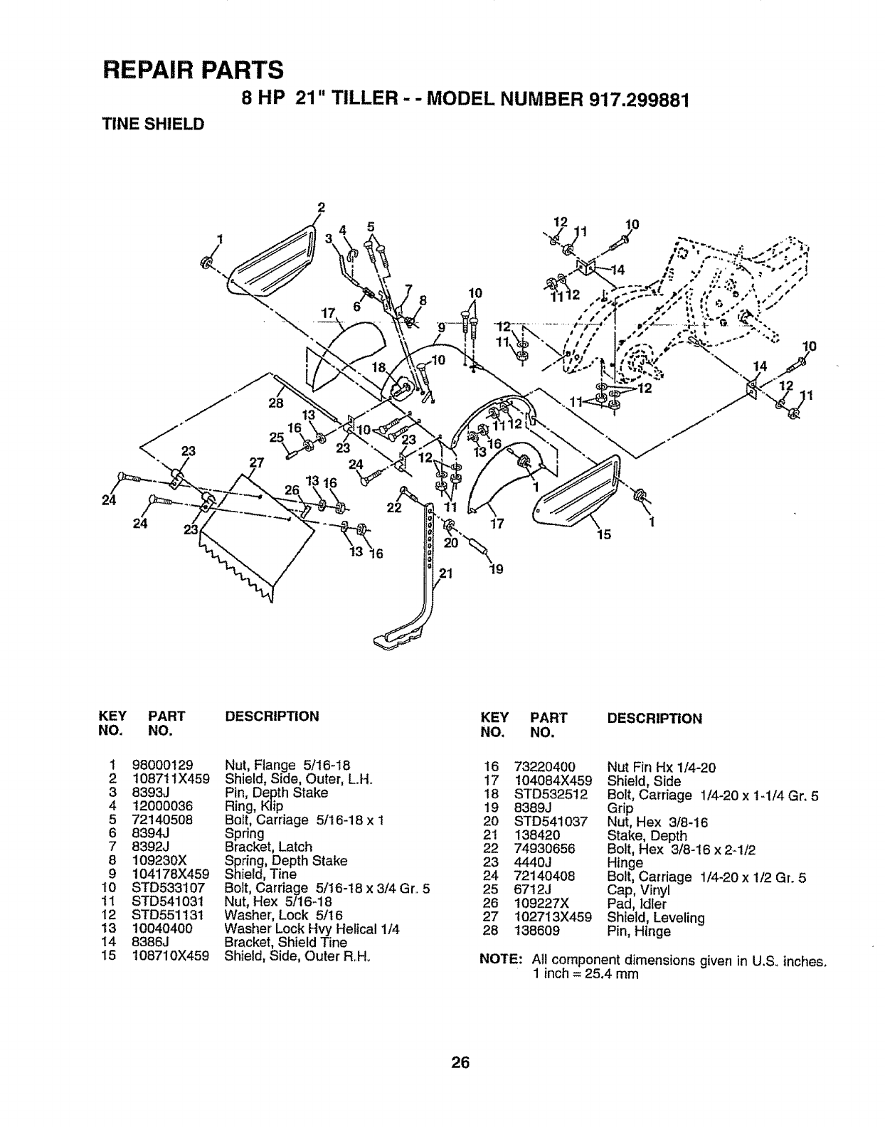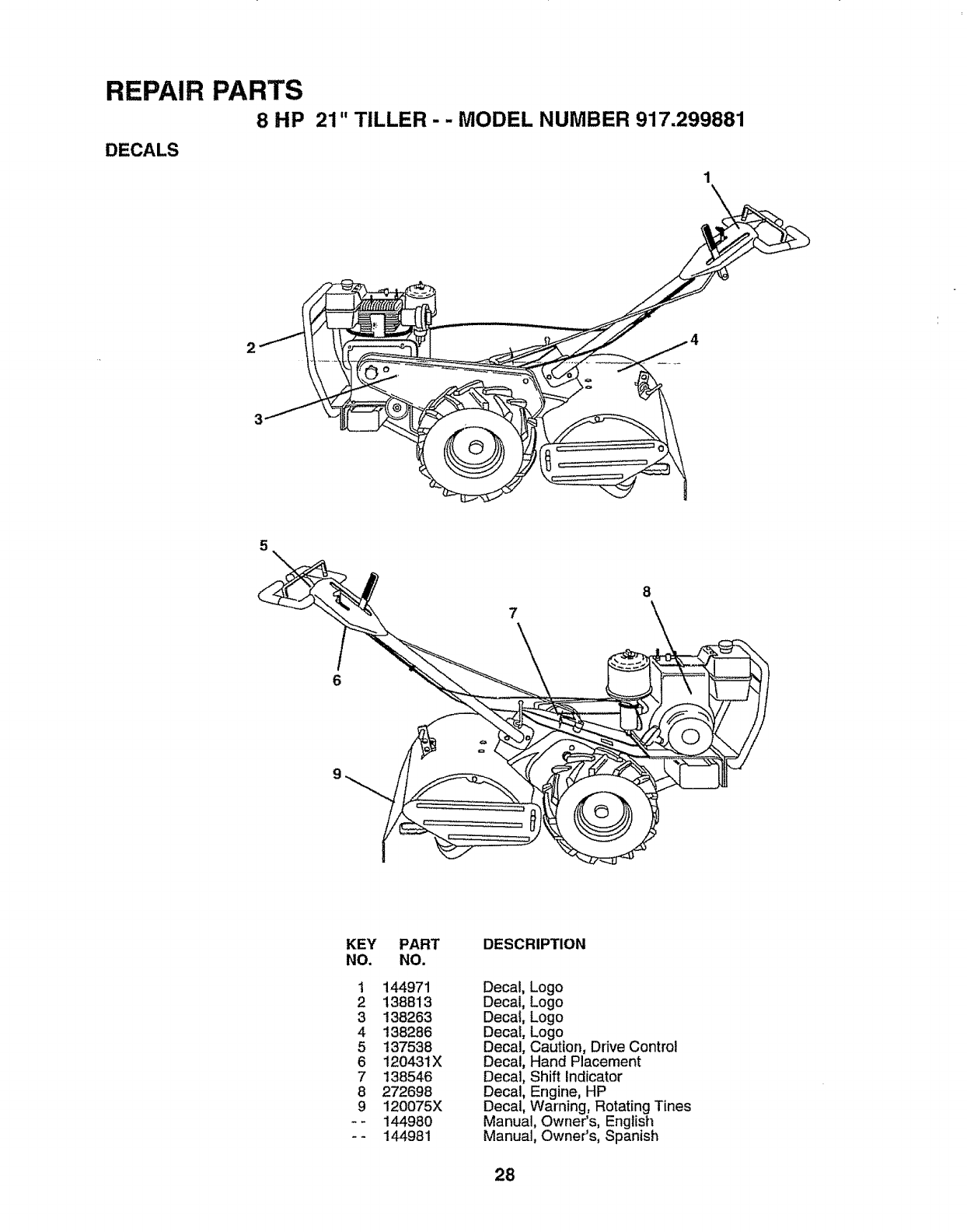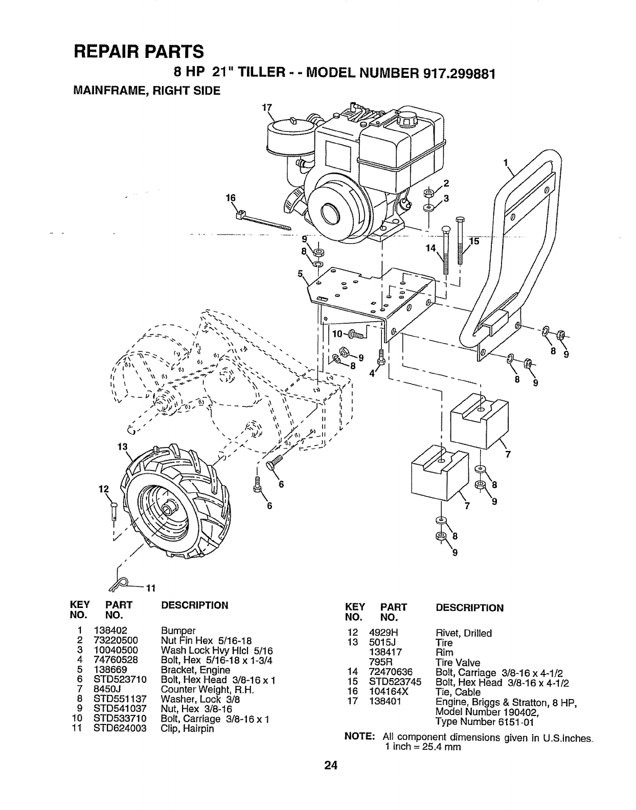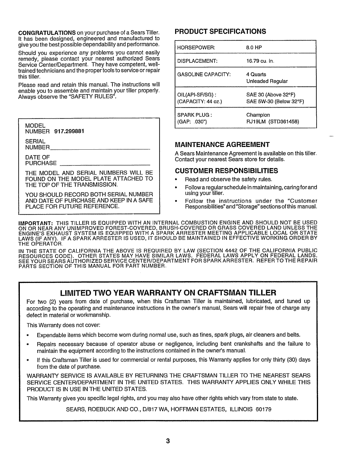 Craftsman 917299881 User Manual TILLER Manuals And Guides L1004047