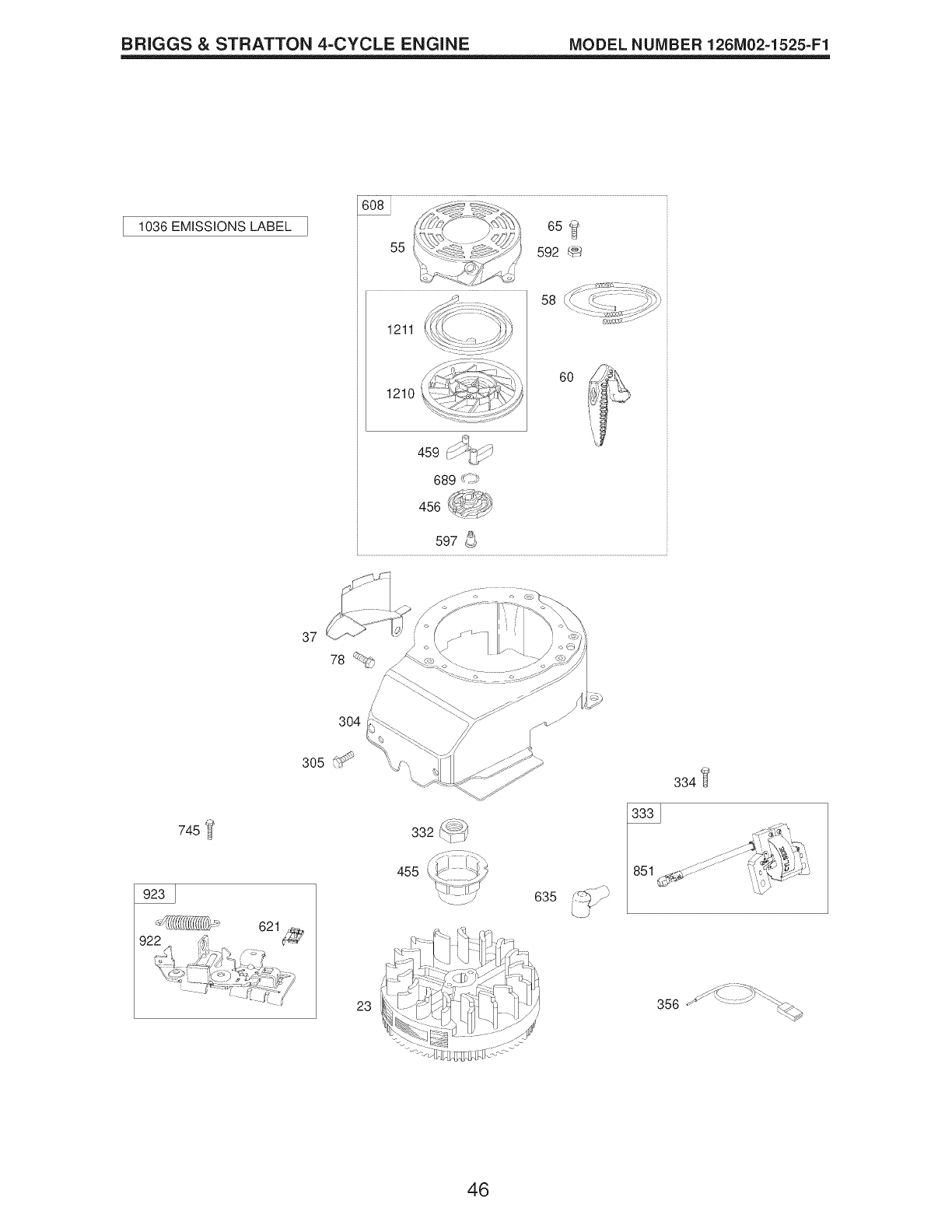 608 497680 Starter-Rewind 1211 498144 Pulley/Spring Assembly