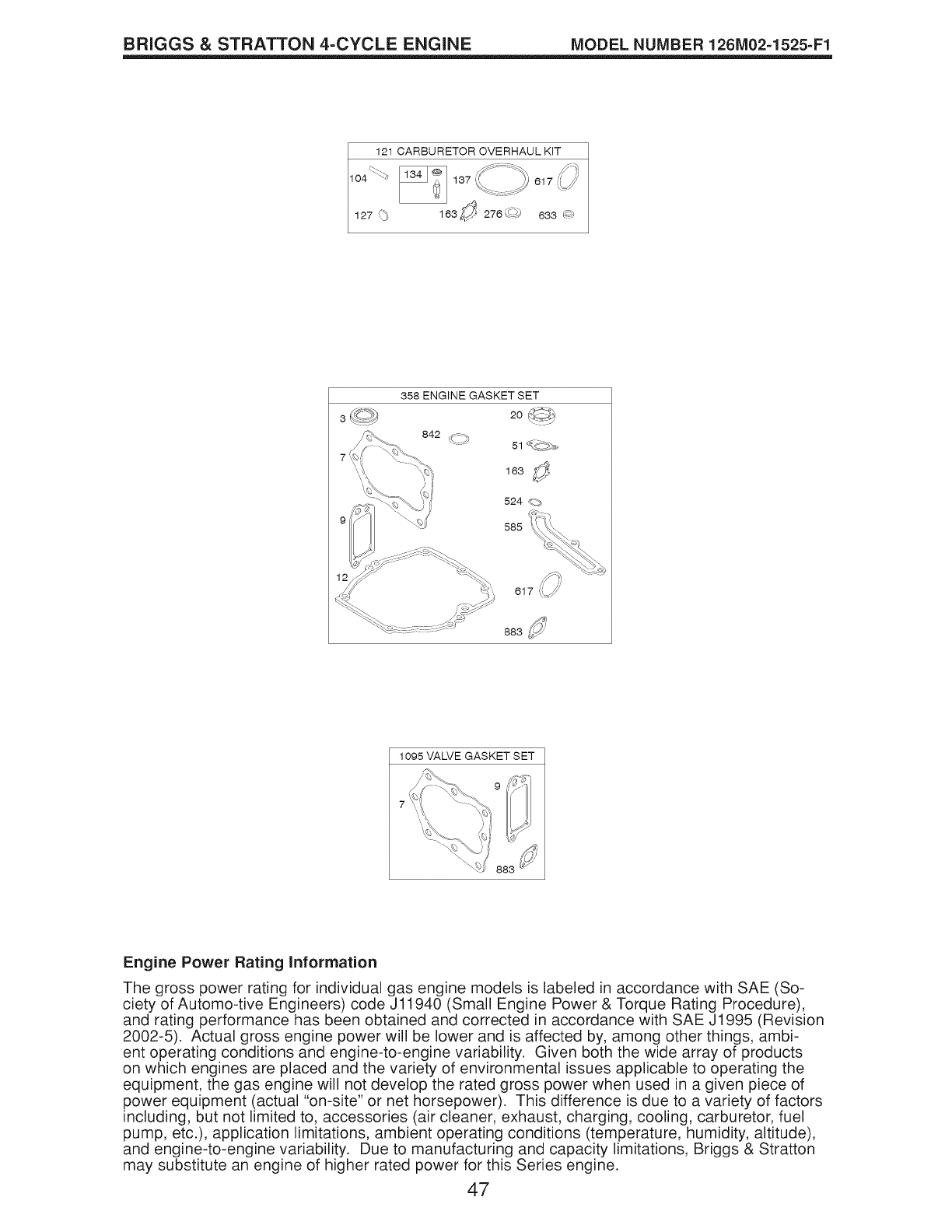 592 690800 Nut (Rewind Starter) 1095 590507 Gasket Set-Valve