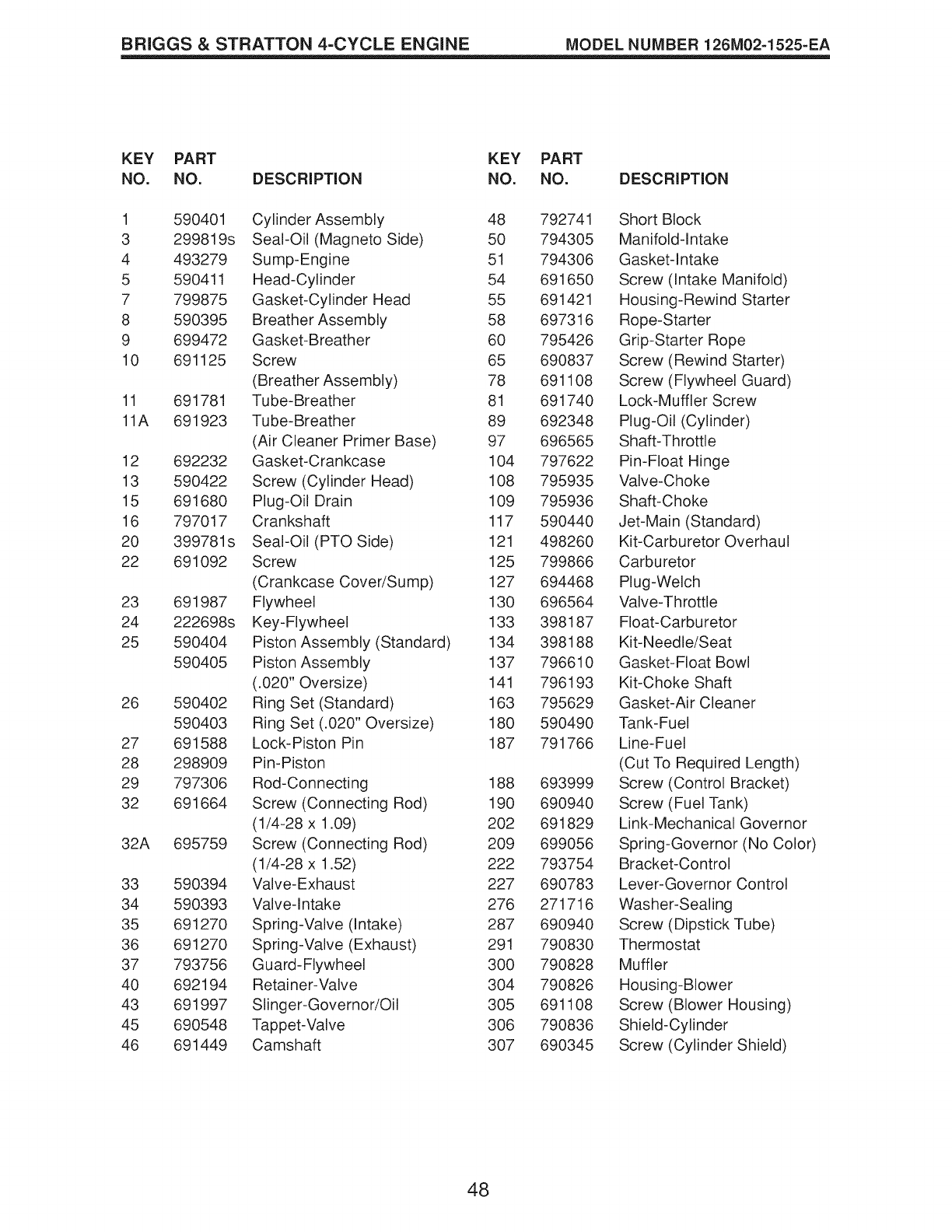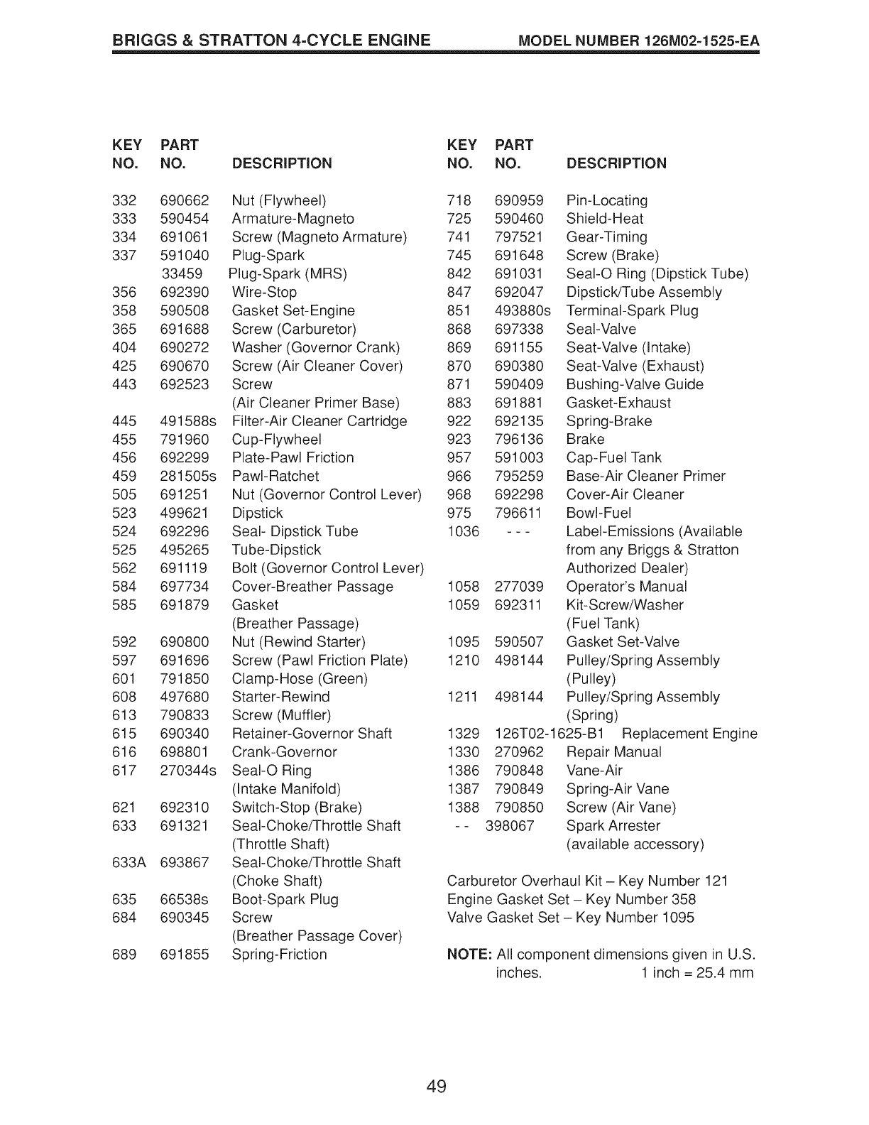 33 590394 Valve-Exhaust 227 690783 Lever-Governor Control
