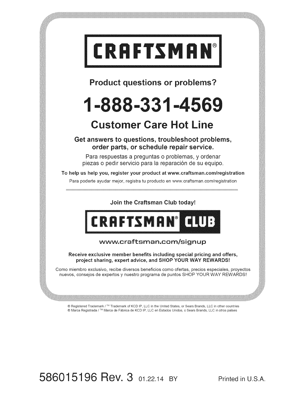 Para poderte ayudar mejor, registra tu producto en www.craftsman.com/registration