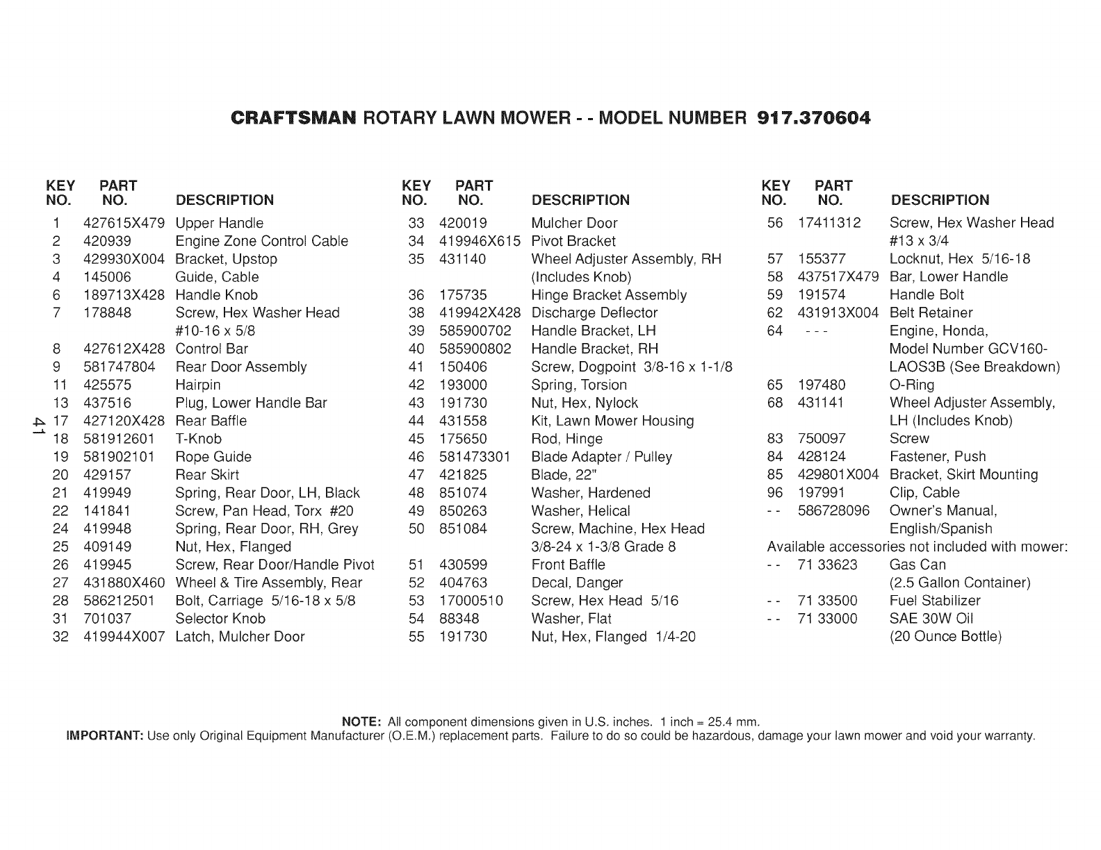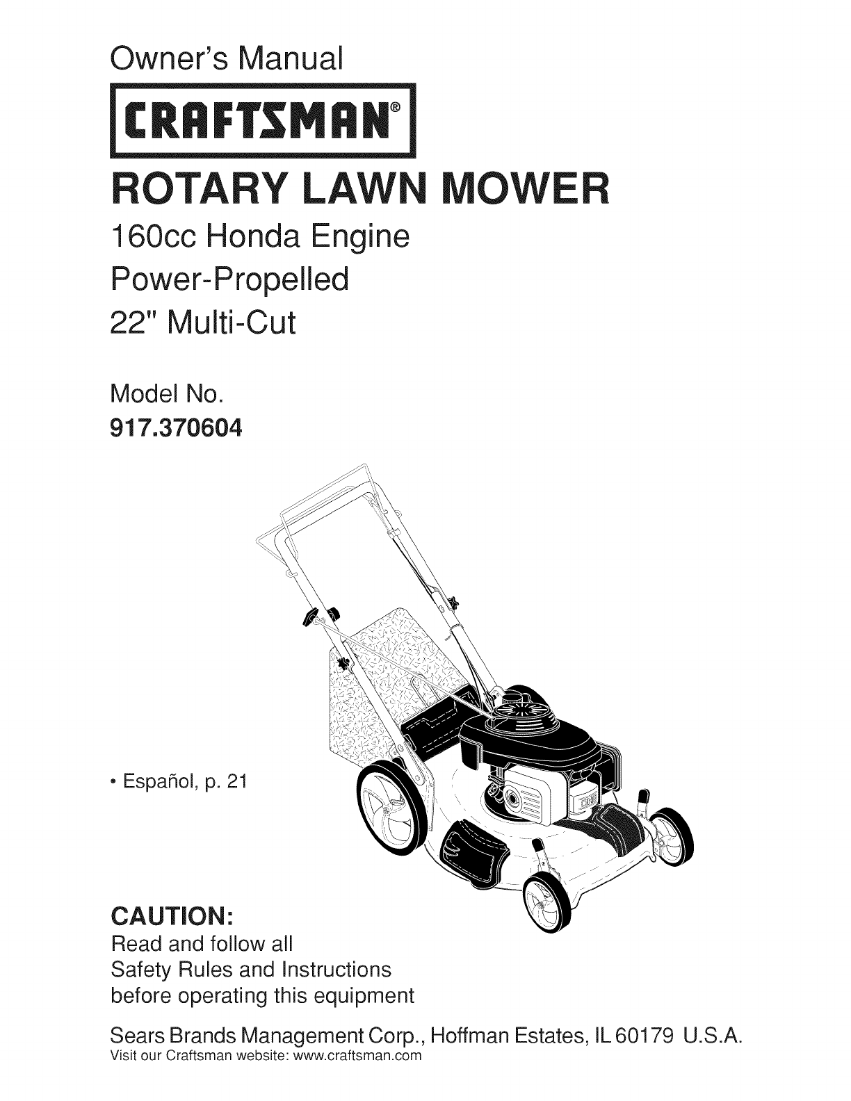 User Manual: Craftsman 917370604 917370604 CRAFTSMAN MOWER - Manuals and Guides View the owners manual for your CRAFTSMAN MOWER #917370604. Home:Lawn & Garden Parts:Craftsman Parts:Craftsman MOWER Manual