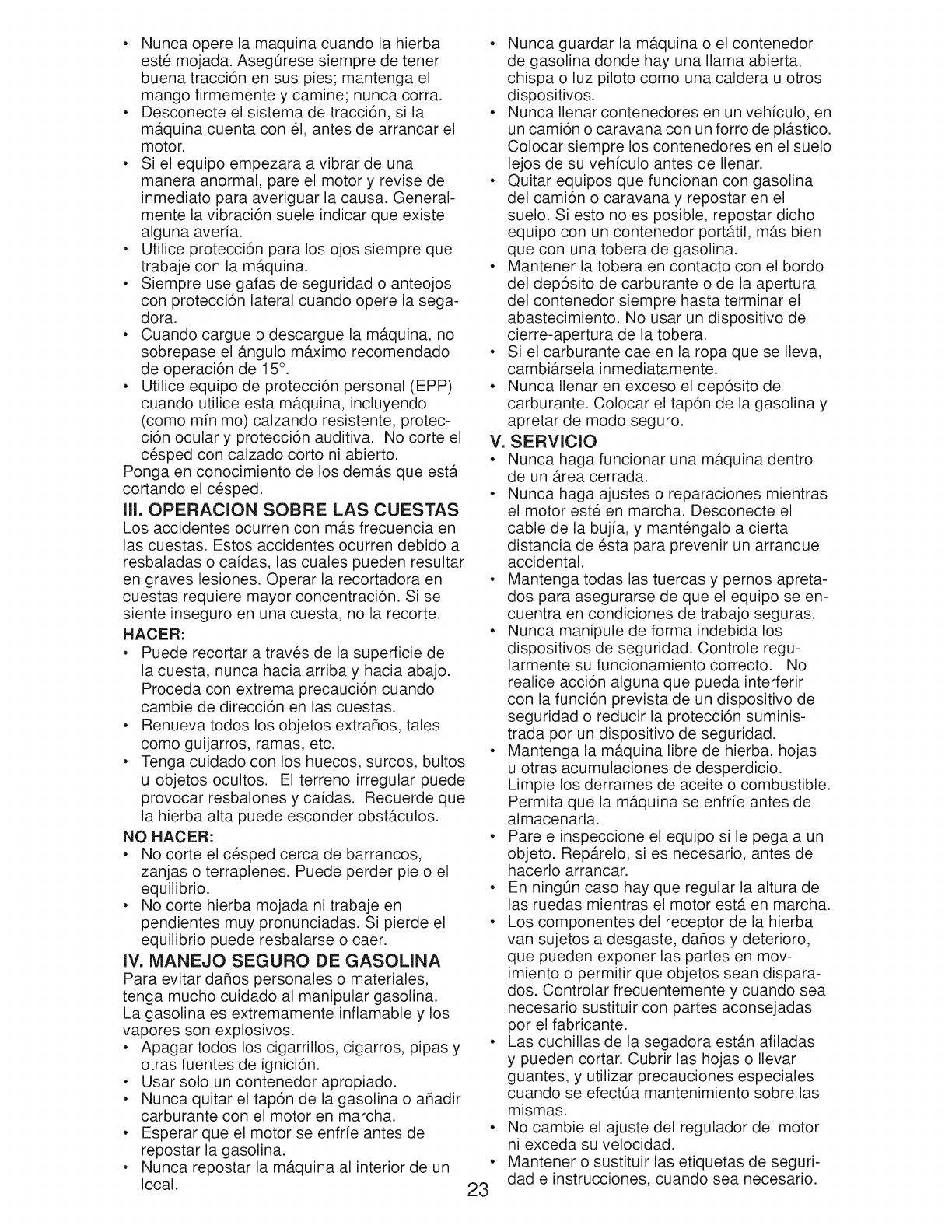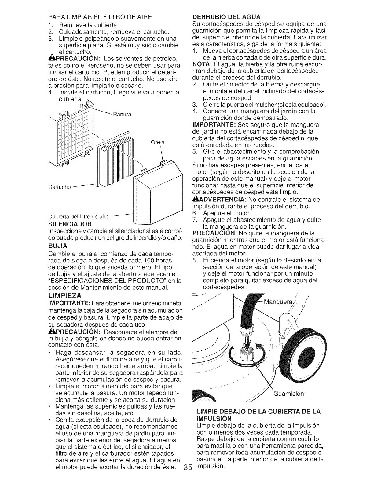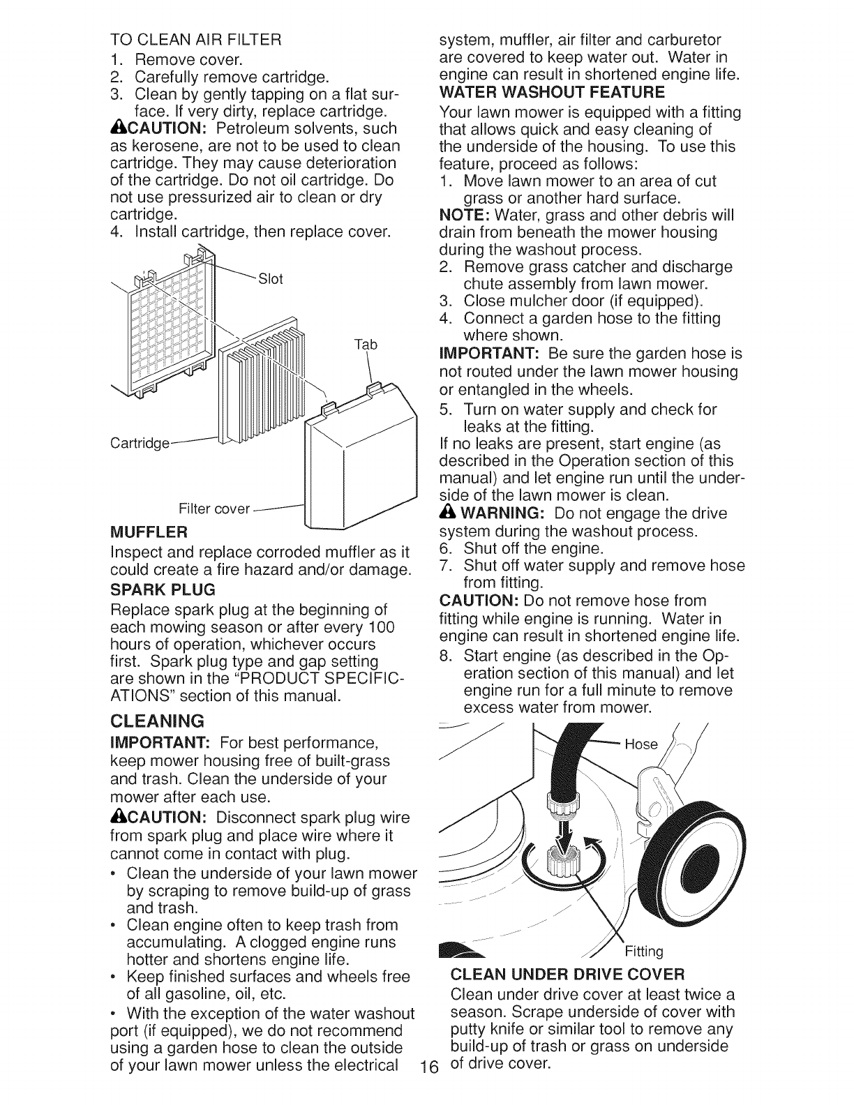 tenance section of the product owner's manual, such as: spark plugs and filters.