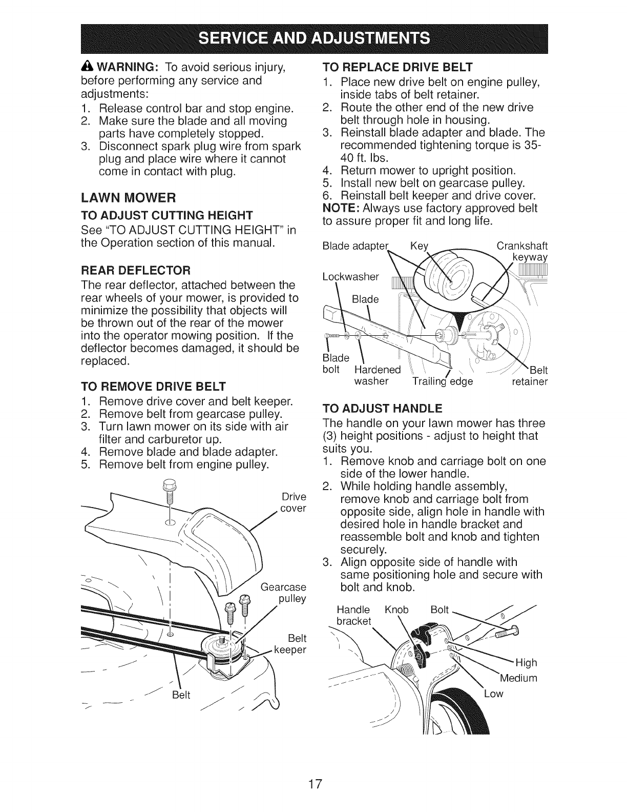 Service and Adjustments ................... 17-18