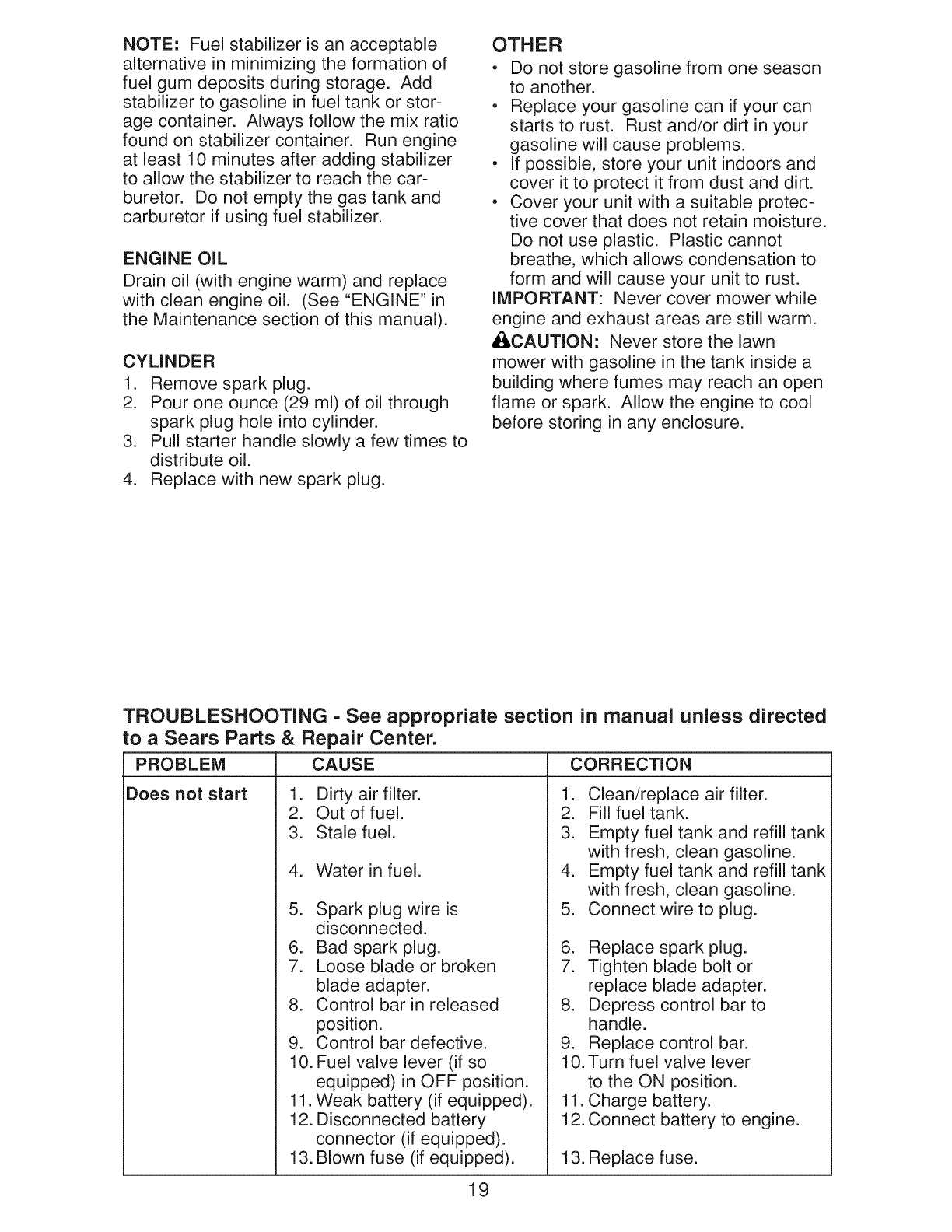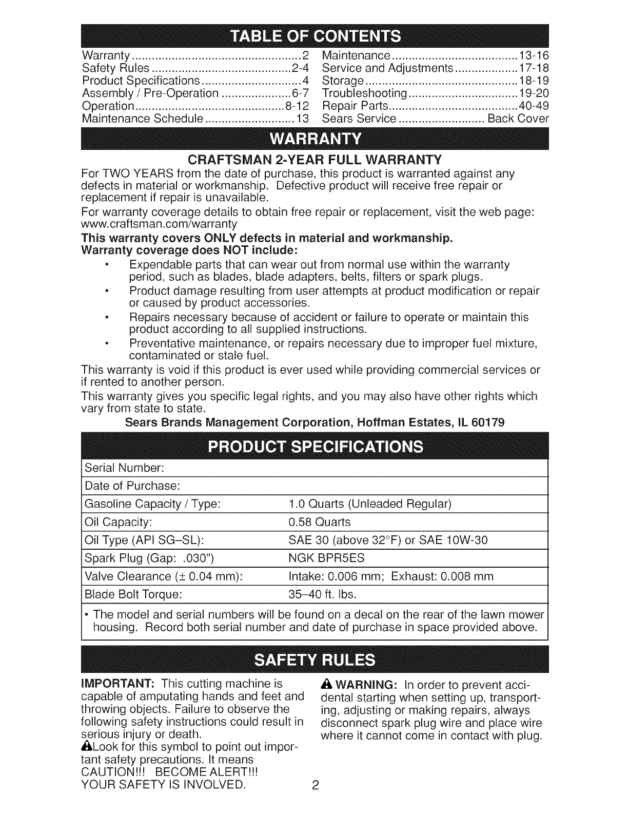 Sears Service .......................... Back Cover