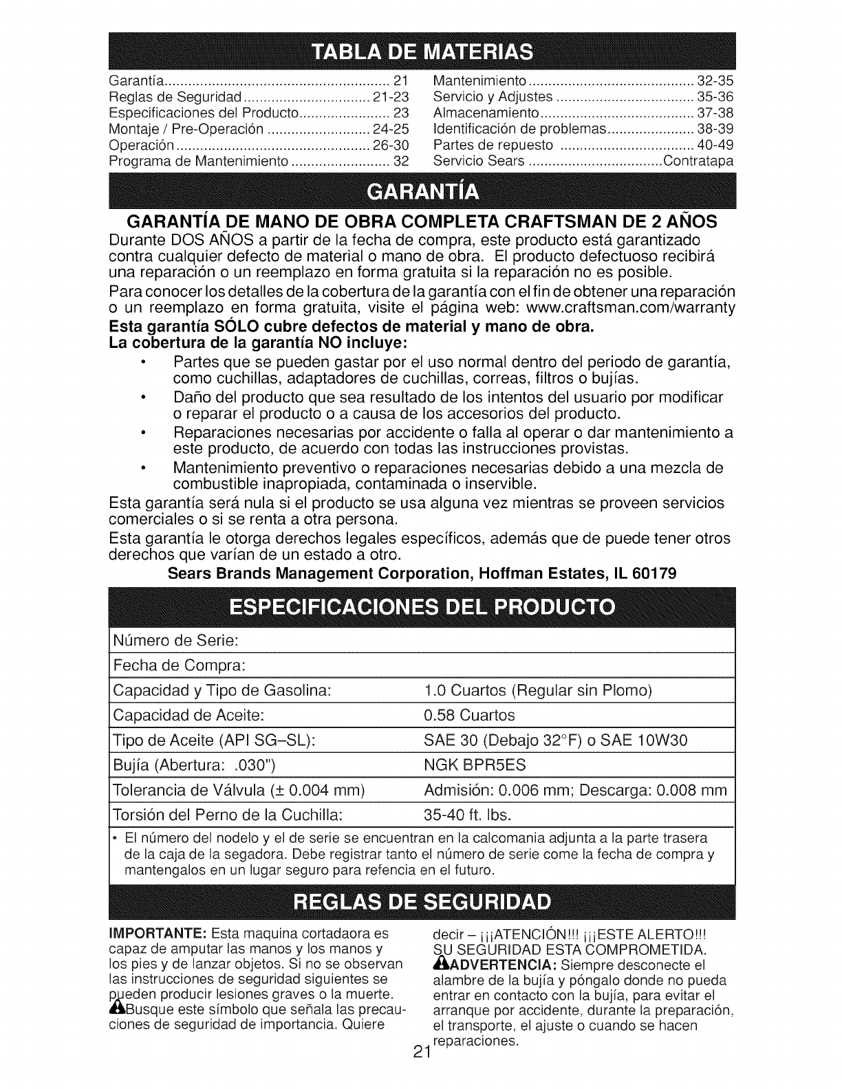 Para poderte ayudar mejor, registra tu producto en www.craftsman.com/registration