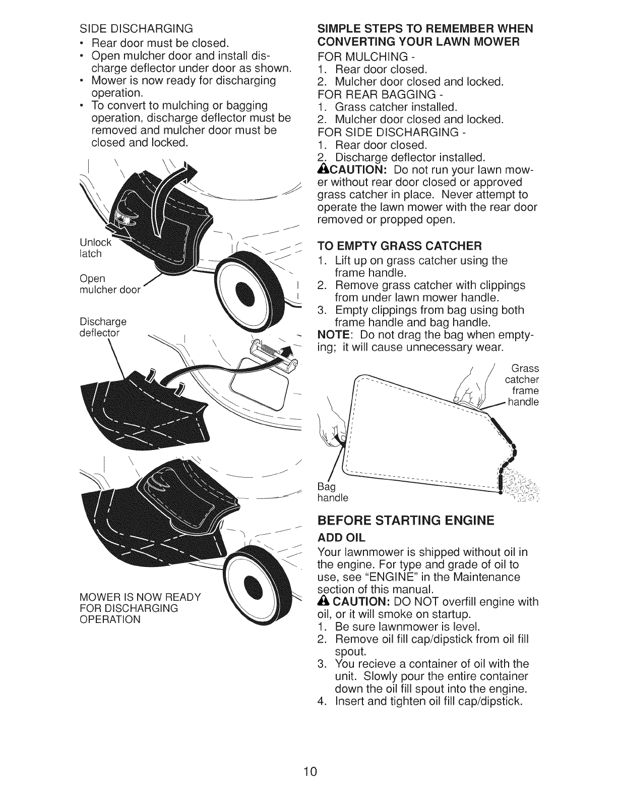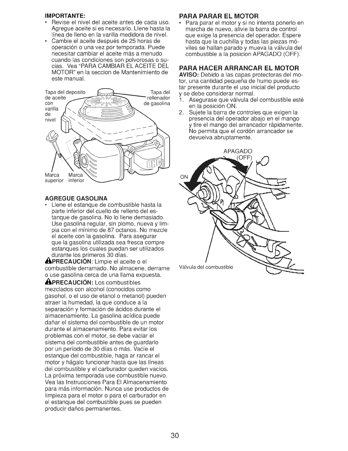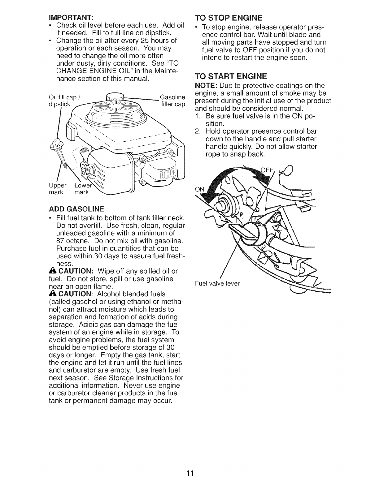 Oil Type (API SG-SL): SAE 30 (above 32°F) or SAE 10W-30