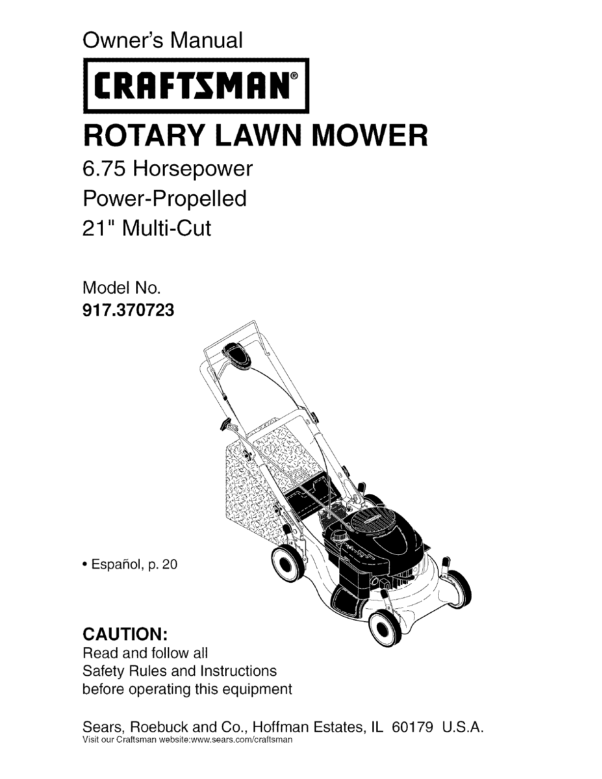 User Manual: Craftsman 917370723 917370723 CRAFTSMAN MOWER - Manuals and Guides View the owners manual for your CRAFTSMAN MOWER #917370723. Home:Lawn & Garden Parts:Craftsman Parts:Craftsman MOWER Manual