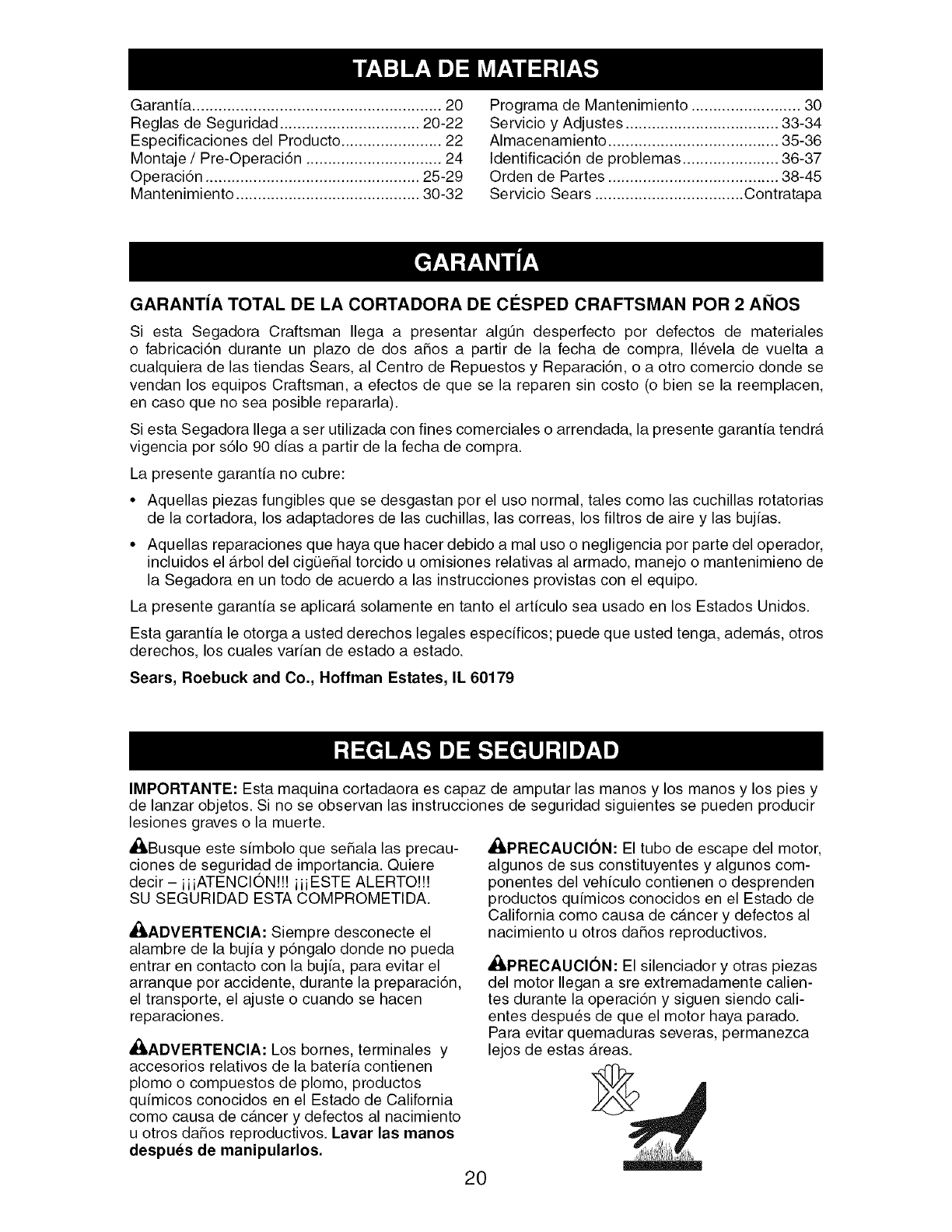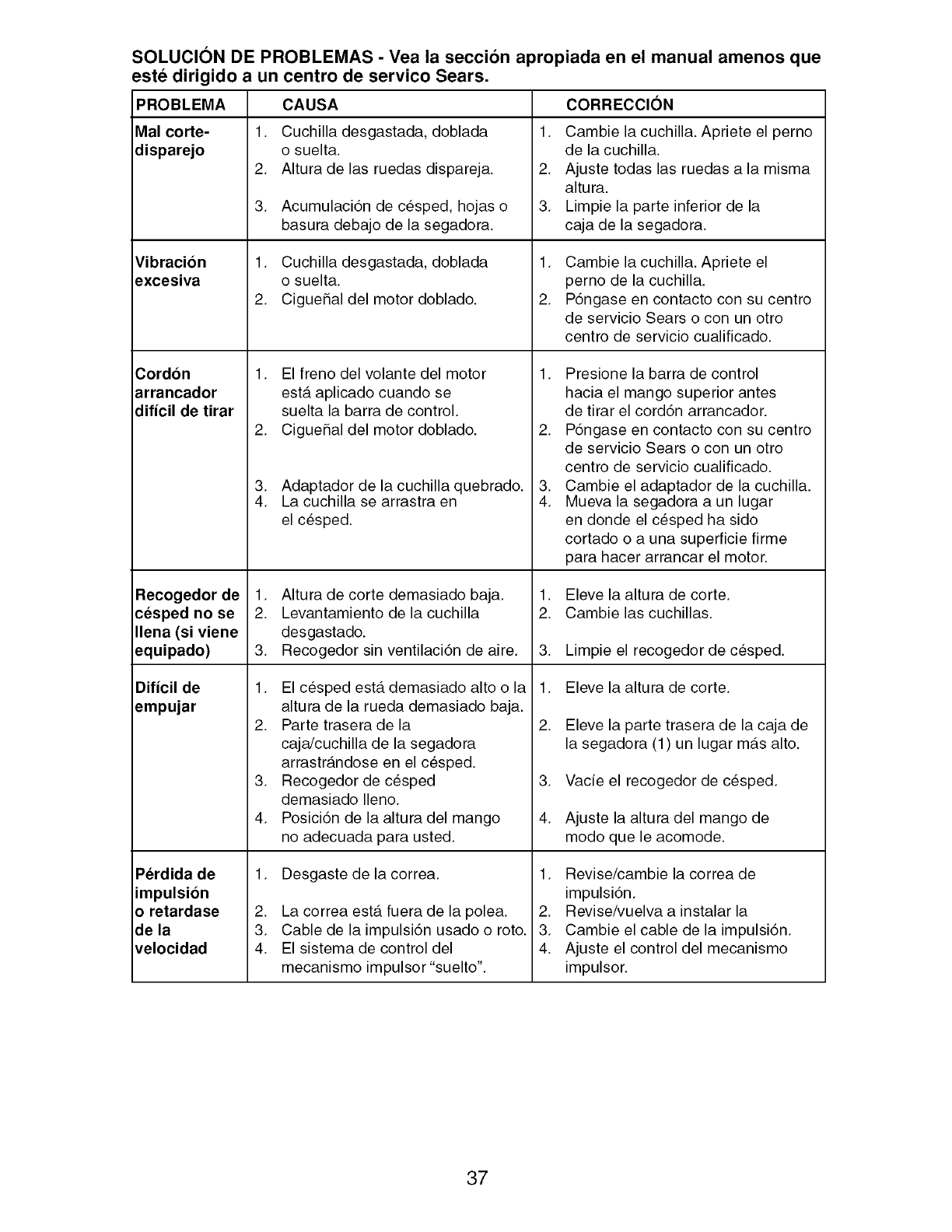 Sears Service .......................... Back Cover