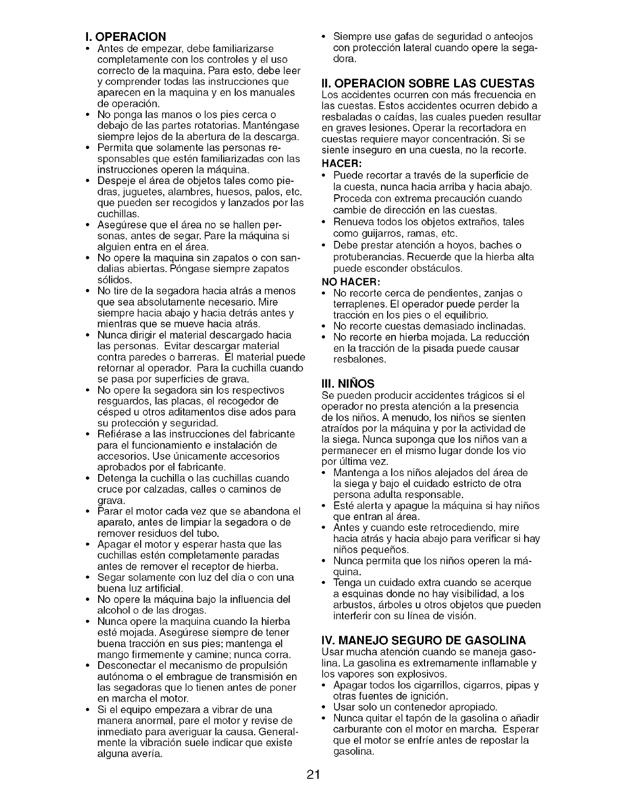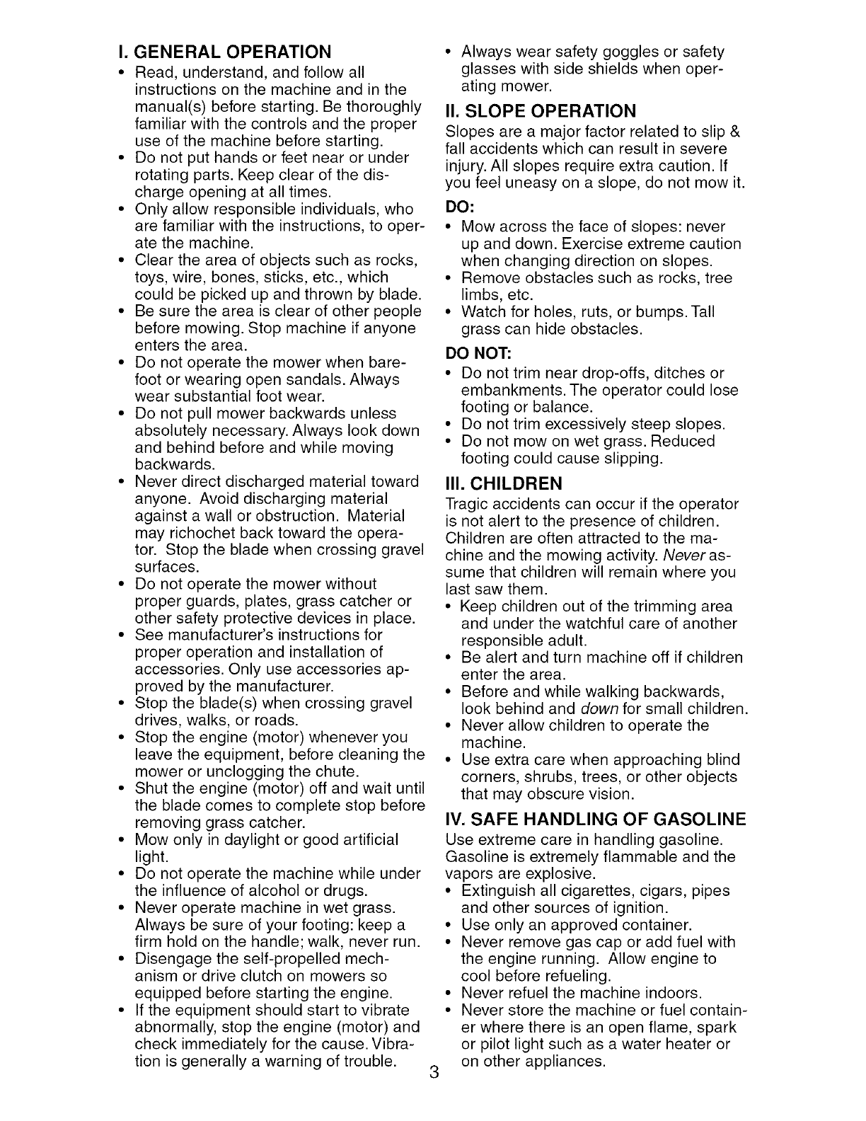 I. GENERAL OPERATION