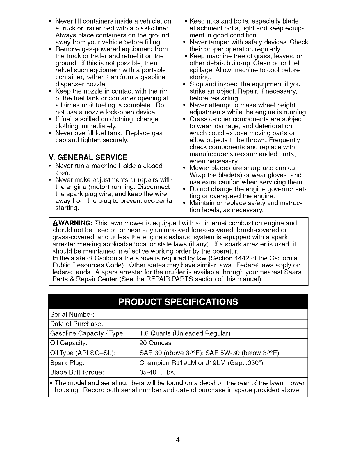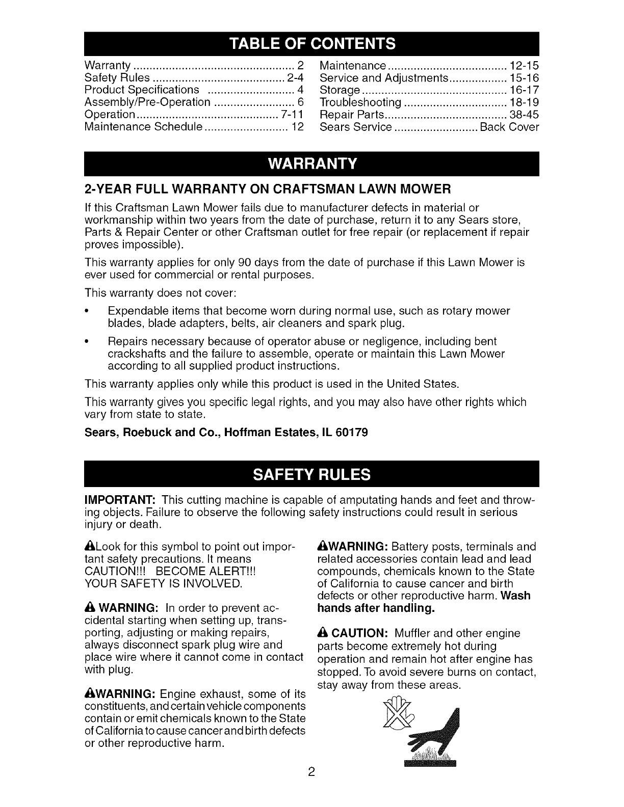 2-YEAR FULL WARRANTY ON CRAFTSMAN LAWN MOWER