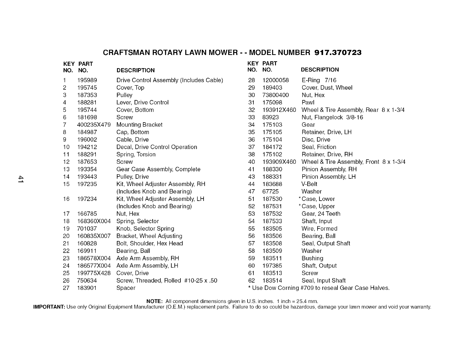 597 691696 Screw (Pawl Friction Plate) NOTE: All component dimensions given in U.S.